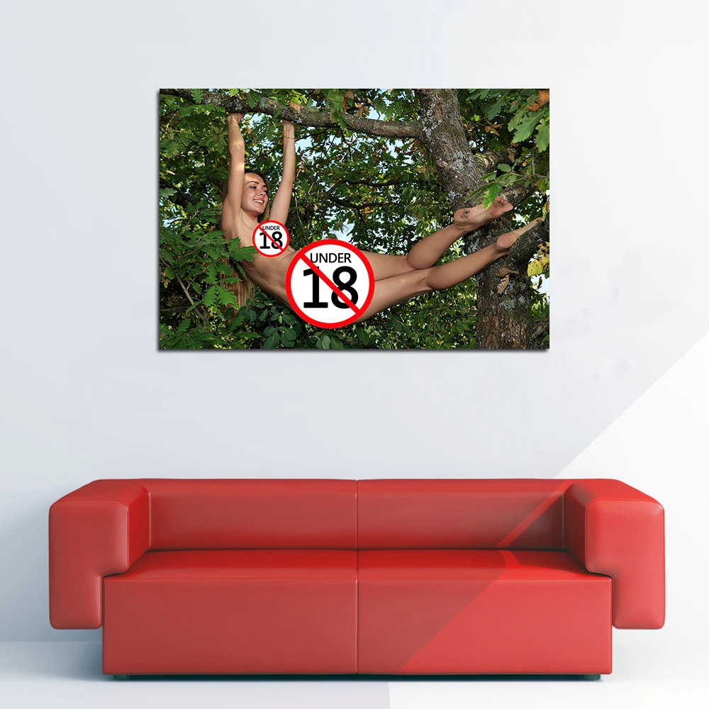 Привлекательная Обнаженная девушка на дереве, холст, живопись, Современный художественный плакат, печать, модель для взрослых, Настенная картина для гостиной, домашний декор