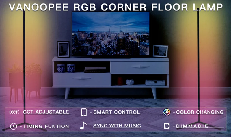 ХарактеристикиFoldable remote control RGB led corner floor lamp