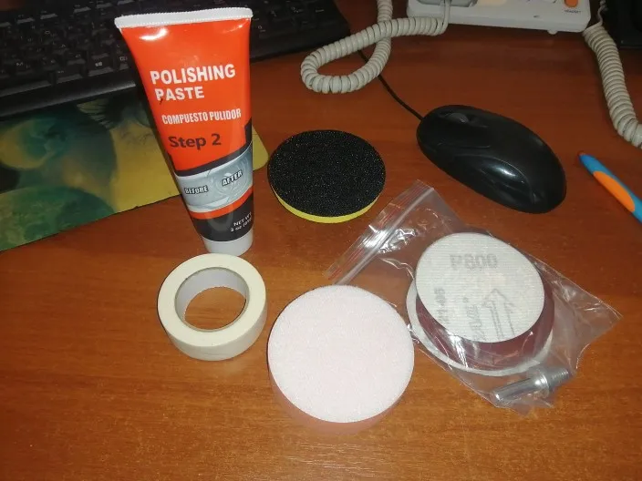 Оранжевый губчатый диск к накладке и нанесите полировочную пасту. Отполируйте линзу до тех пор, пока блеск не восстановится в первоначальном состоянии
