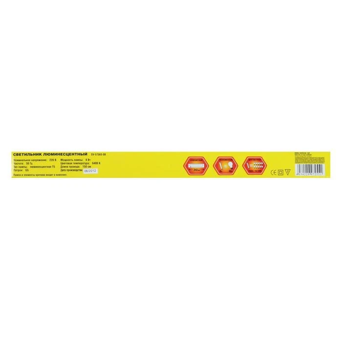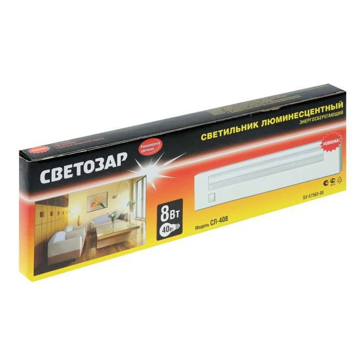 Светильник люминесцентный "СВЕТОЗАР" СЛ-408 с плафоном и выкл., Т5, 8 Вт, 342x20x68 мм 7042749