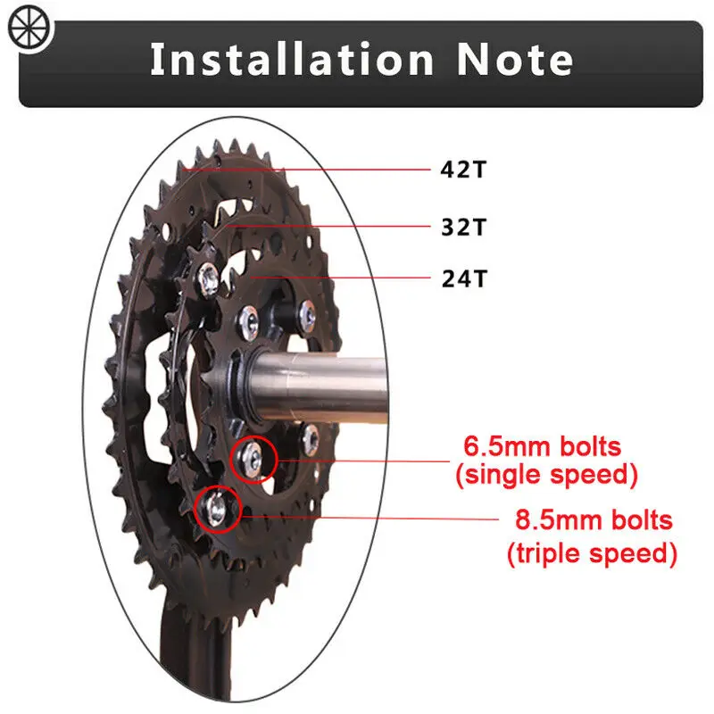 Особенности (включает в себя только 24/32/42 т): Специальные Зубы профили дизайн привести к тому, что цепочка оставить передняя Звездочка проще в тех случаях, когда переменная скорость. Во-вторых, из-за вогнутой и выпуклой конструкции цепь имеет чрезмерное место, поэтому скорость езды может быть более гладкой.