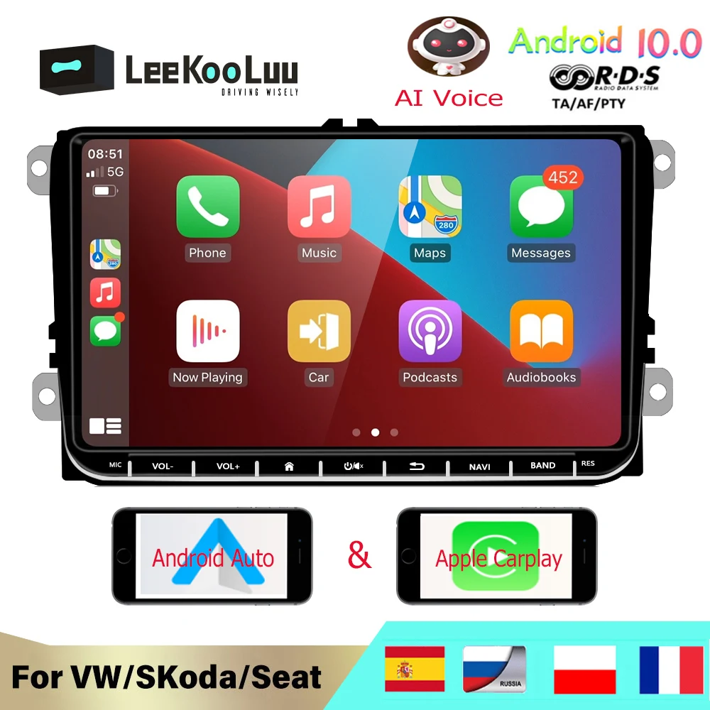 LeeKooLuu Автомагнитола 2din автомобильный мультимедийный плеер Android радио GPS Carplay для Volkswagen VW T5 Touran Golf 5 6 Polo Passat b6 b7
