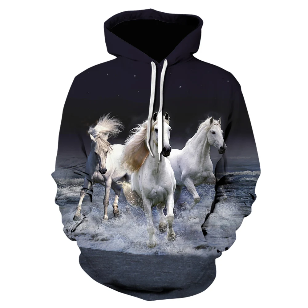 Толстовка мужская с 3D-принтом красивая лошадь, Свитшот унисекс, ул...