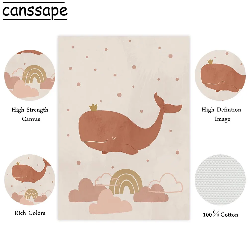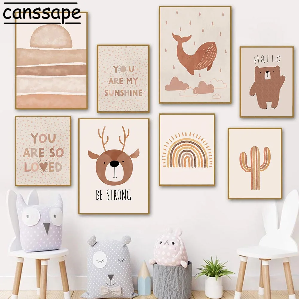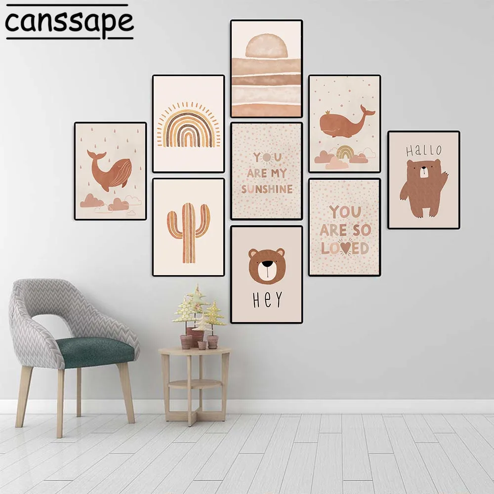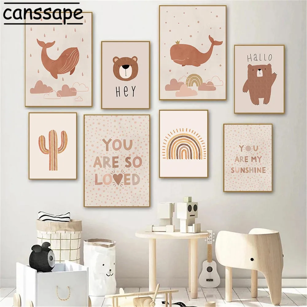 Настенный постер с рисунком Кита, медведя, оленя, радужные плакаты, принты с кактусами, богемная Картина на холсте, декор детской комнаты