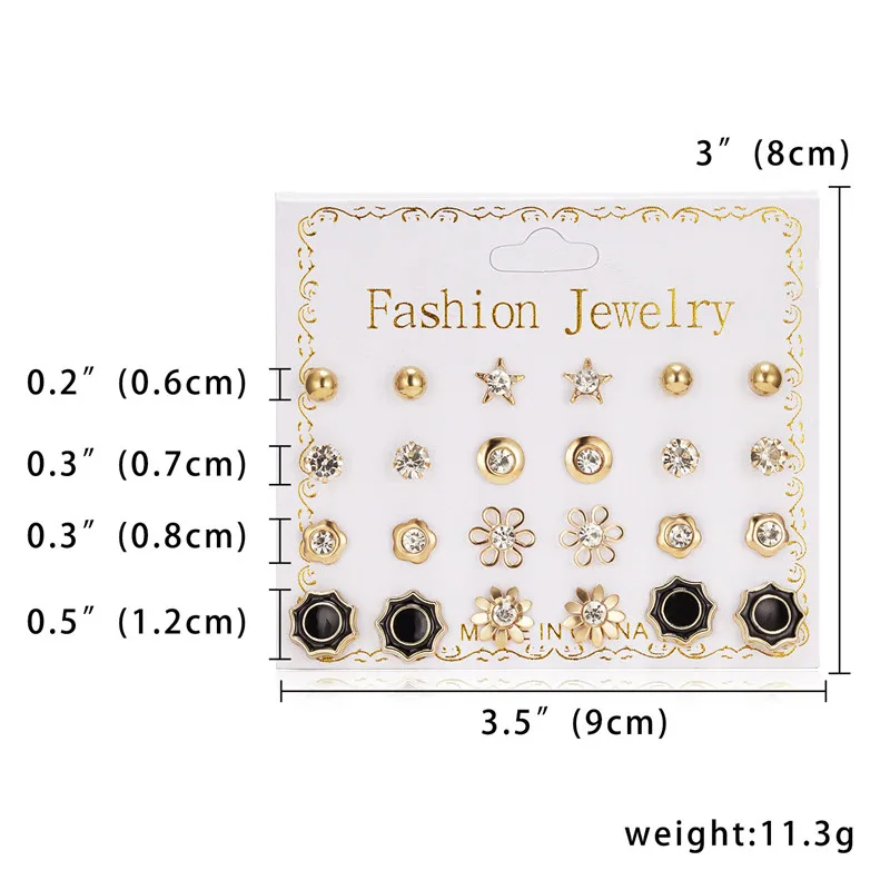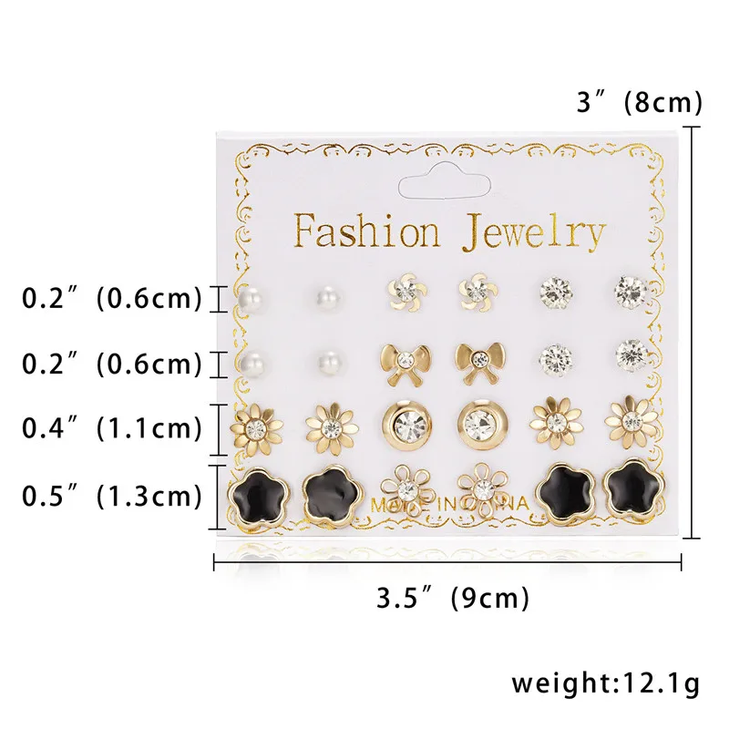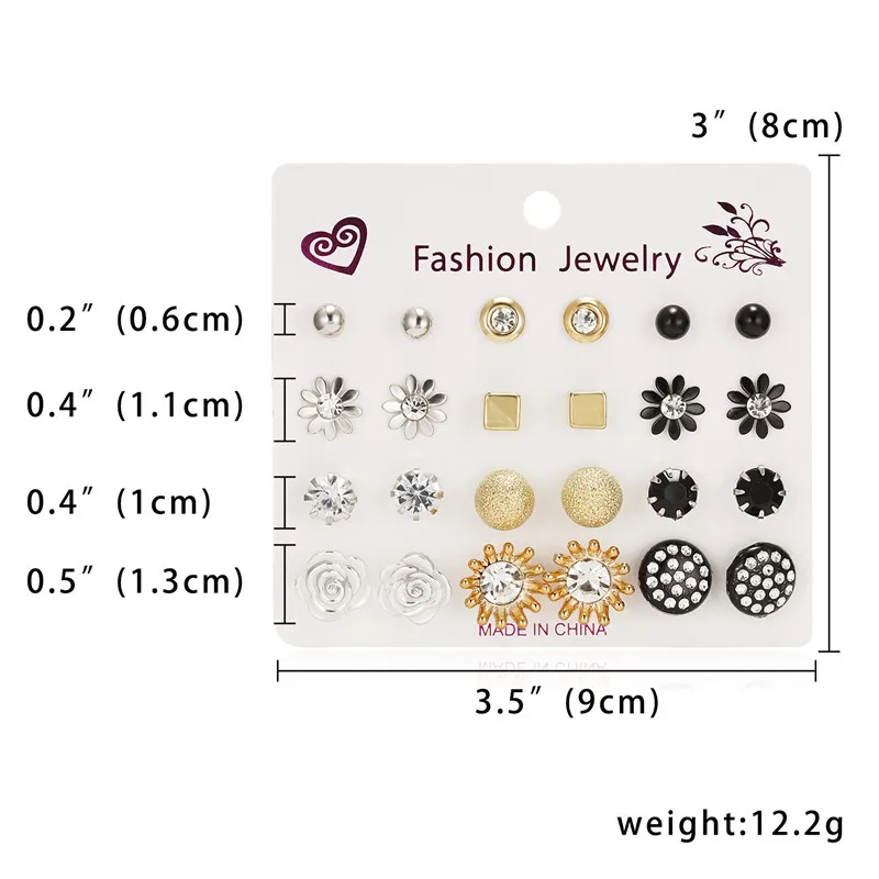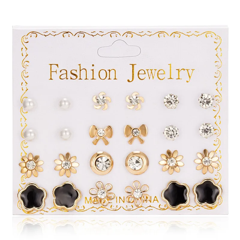 12 пар сережек, разные стили Стразы, Подсолнухи, цветы, геометрические, животные, сердце, пластиковые гвоздики, ювелирные изделия для девочек