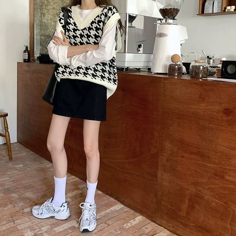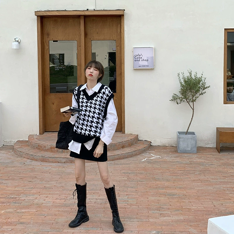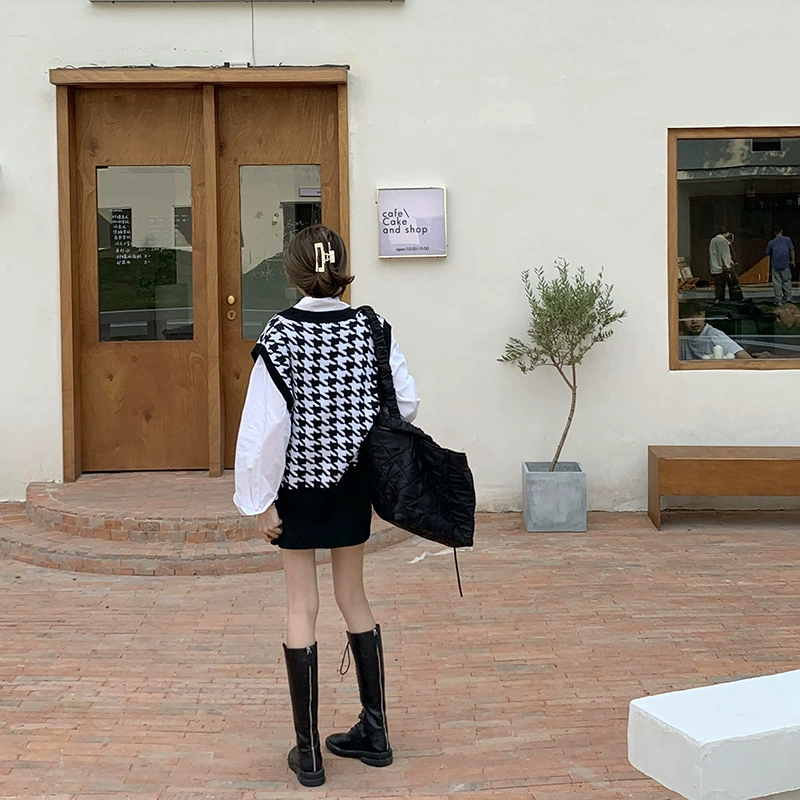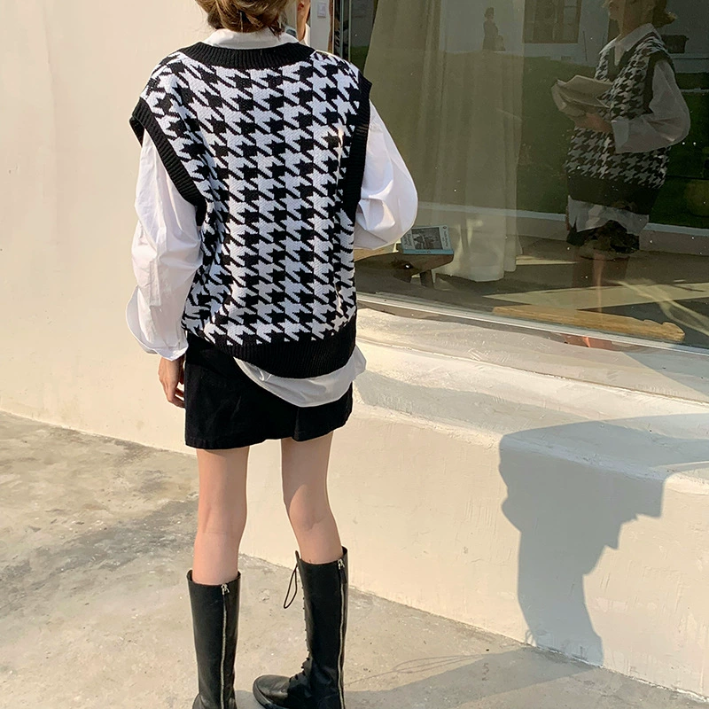 Жилет Y2KHoundstooth, пуловер, Женский вязаный жилет, новинка 2022,...