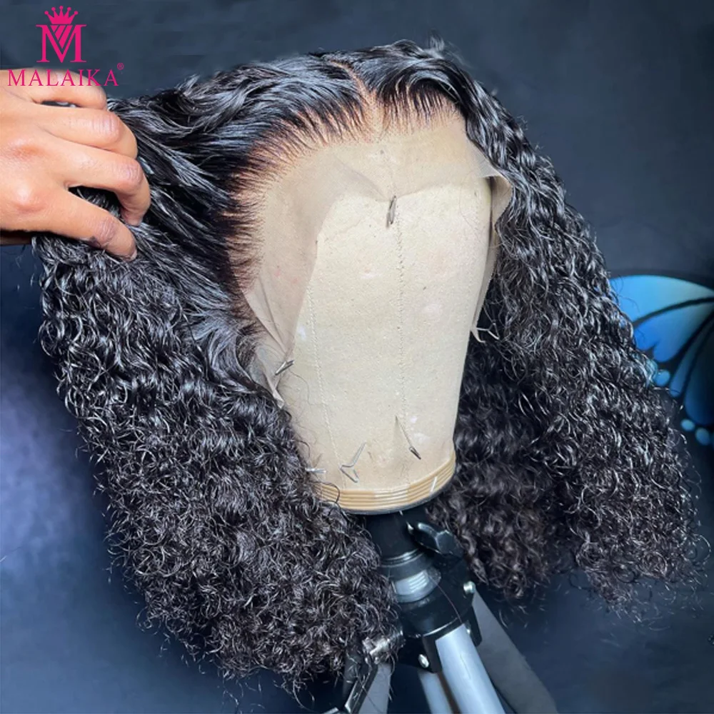 Кудрявый парик Malaika 13x4x4, парики из натуральных волос на сетке, предварительно выщипанные, парик для салона, парик с глубокой водной волной на сетке