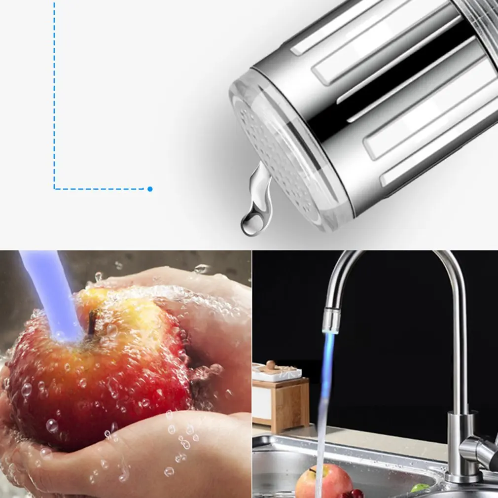 Features: 100% brand new and high quality. This little device fits on most taps and lights up a set of LEDs when you turn on the tap. Transforming the stream of water into a beautiful waterfall of light. The sensitive faucet light will change colors according to the temperature of water. The color's change remind you the water's temperature. When Water flows down, the LED will light instantly and automaticaly Water glows Blue when water is Cold (temperature below 32 Centigrade). Water glows Green when water is Warm (temperature is 33 - 41 Centigrade). Water glows Red when water is Hot (temperature above 42 -45 Centigrade). When temperature above 46 Centigrade, Red color will flash instantly No batteries and external power supply, it will illuminate after water flows down. Offer you a delight & wonderful experience. Ideal for bathroom or kitchen to make it fantastic. Specifications: LED Color: Multiple color, RGB, Single color Internal diameter: 15mm External thread diameter: 25mm Item size: 32 * 25 * 25mm Package Include: 1 x LED light faucet