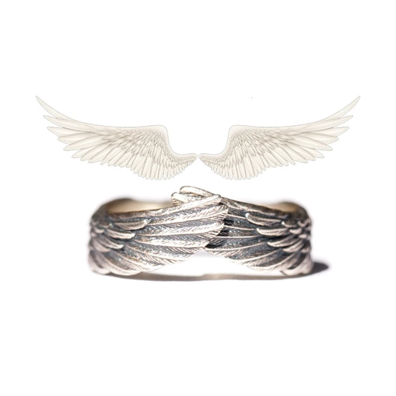 Регулируемое кольцо с перьями, открытое Ретро ювелирное изделие в стиле панк, кольцо с крыльями, обещание для женщин, девушек, подарки на день рождения, кольцо в форме ангельских крыльев