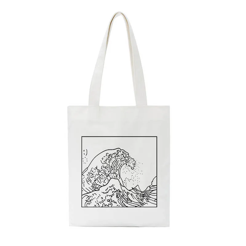 Холщовая Сумка с забавным принтом, с японскими волнами