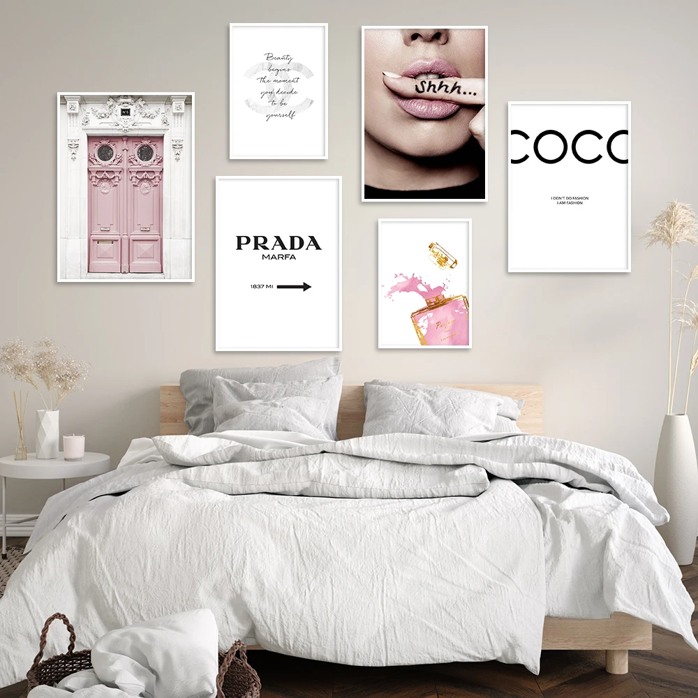 Розовый Модный постер с надписью дверь духов, настенные картины на холсте, декоративные картины с цитатами для спальни, девичьей комнаты, декор для комнаты
