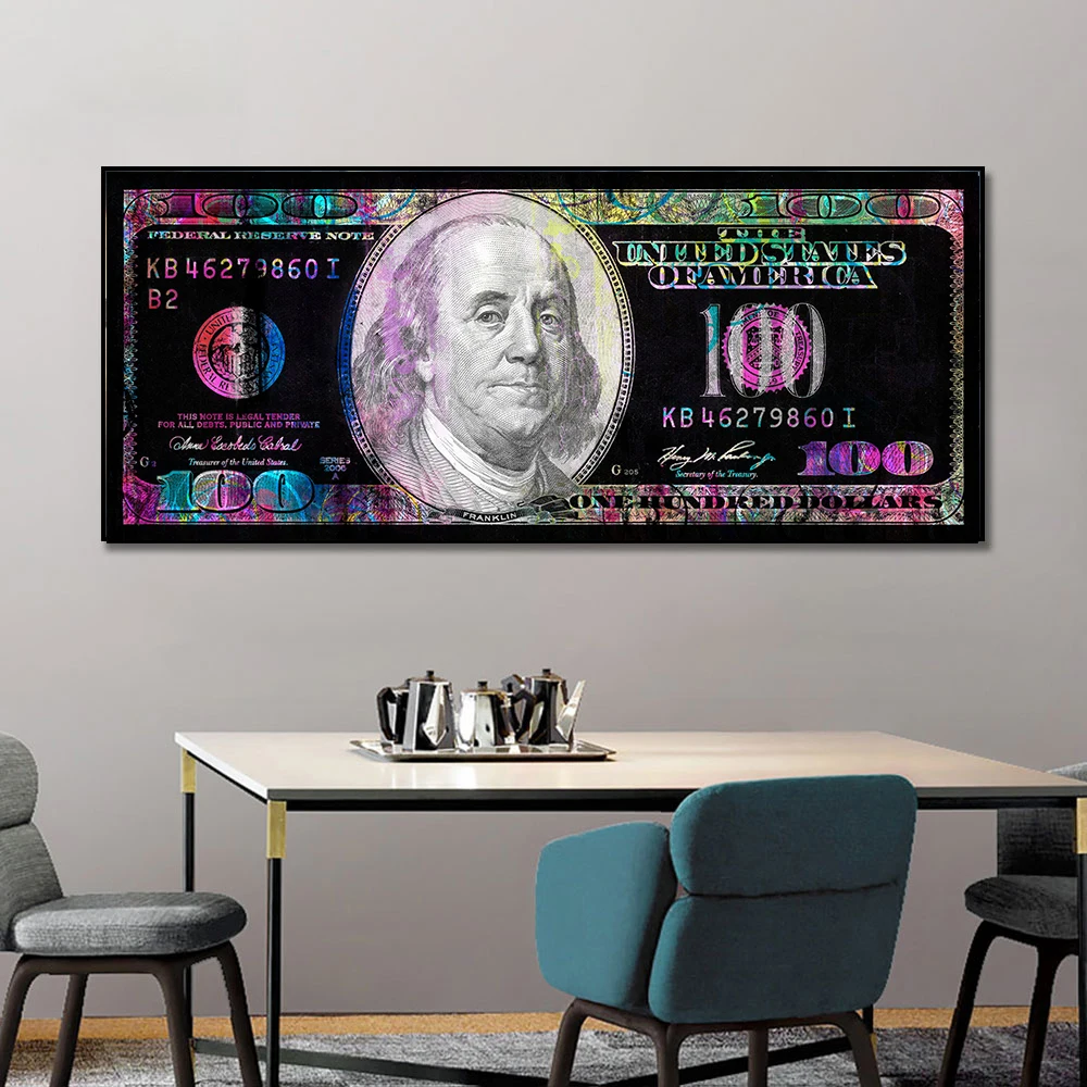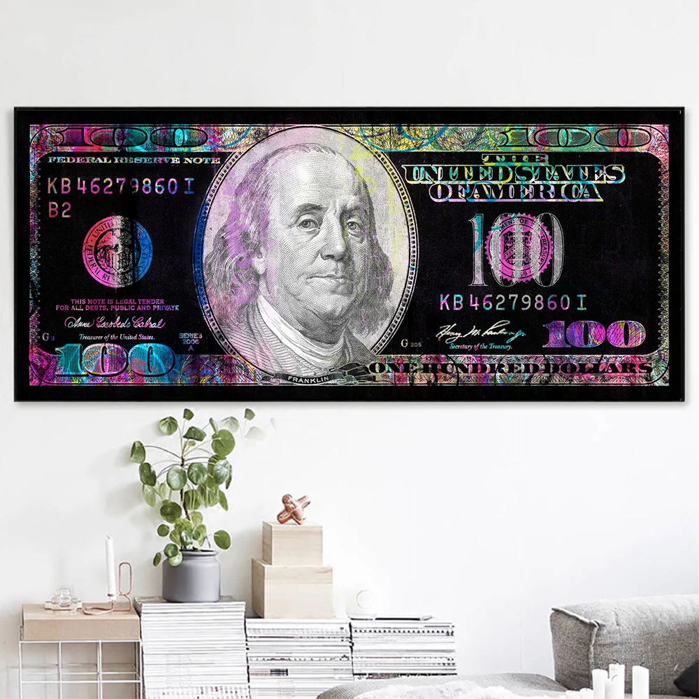 Холст с изображением купюр на сто долларов, 100 долларов, холст с изображением купюр, поп-арт, холст с мотивацией денег, плакат с мотивацией, настенное искусство для офиса