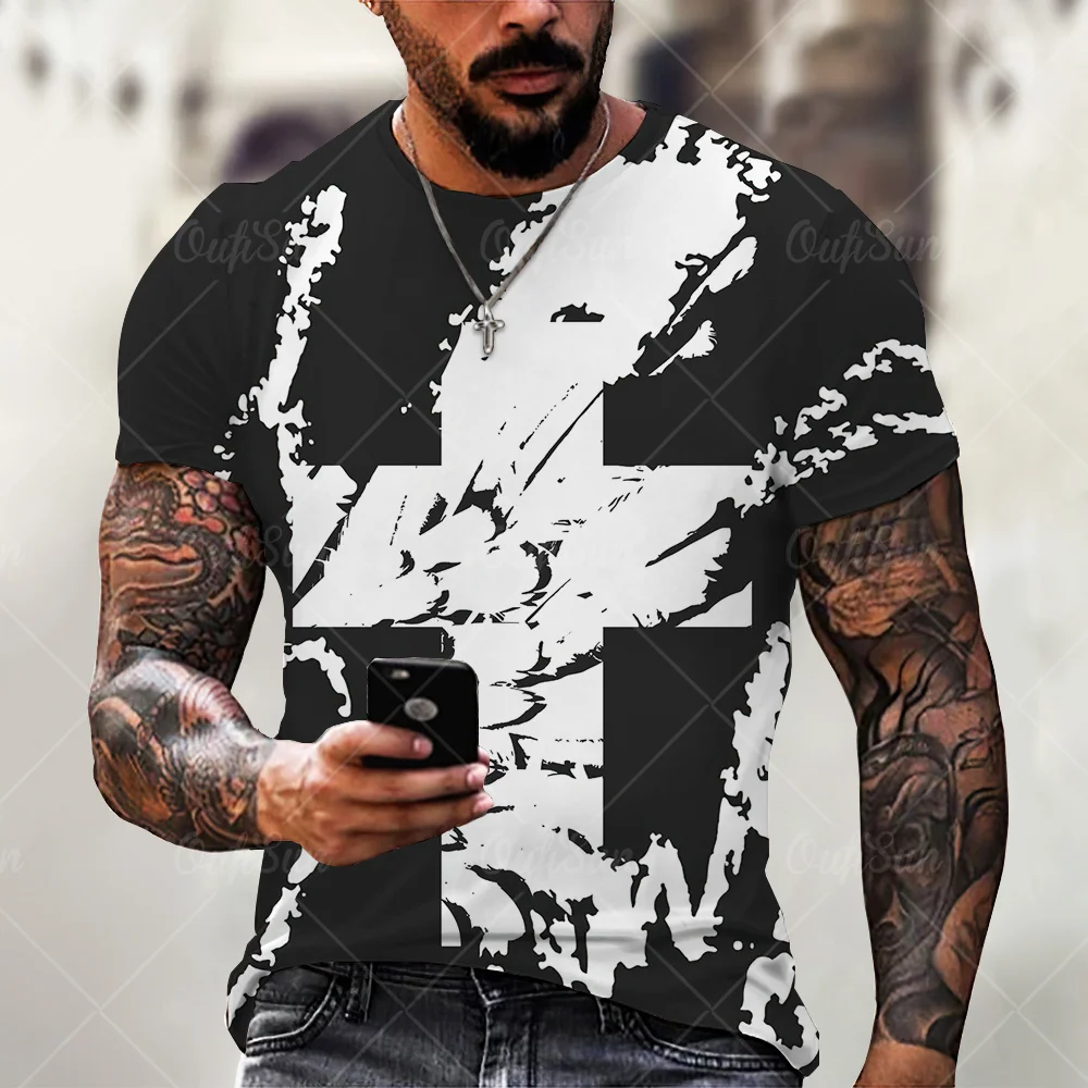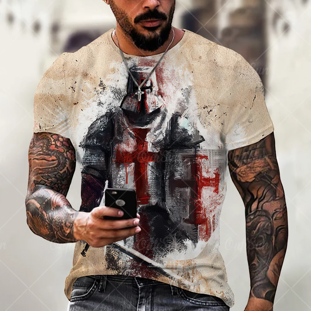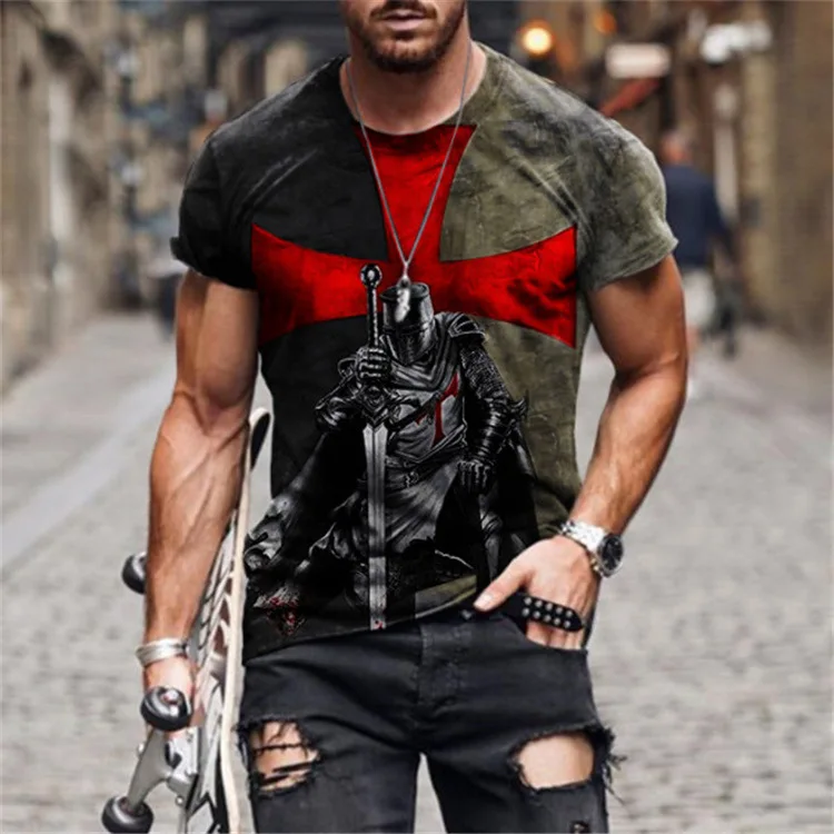 Мужская футболка с 3D-принтом Templar, летние топы с перекрестным р...