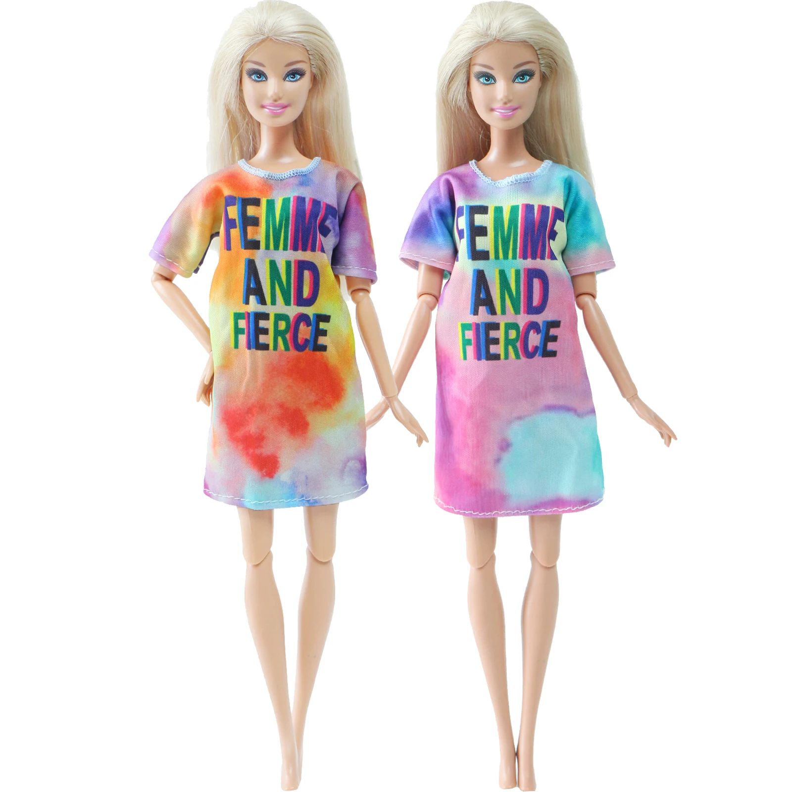 2 шт.компл., юбка-футболка для куклы, с надписью