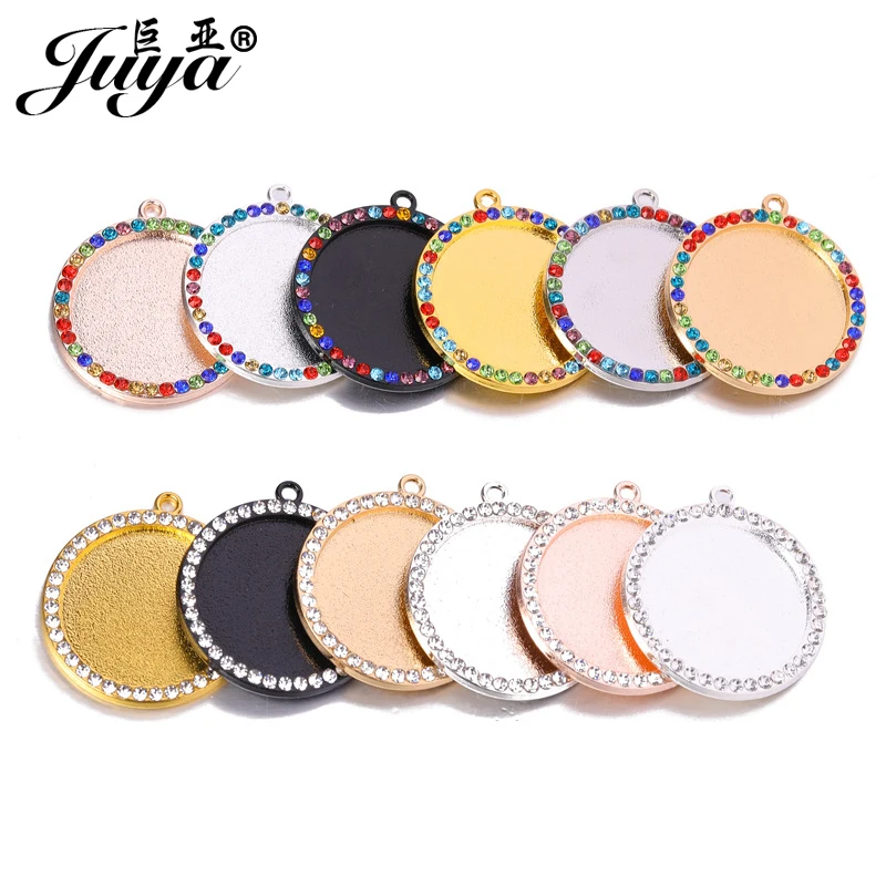 50 шт. Подвески с бриллиантами, оправа для Стразы с кабошоном, 20 мм, сплав, Пустой Лоток для изготовления ювелирных изделий «сделай сам», аксессуары для ожерелья, Ювелирная фурнитура, компоненты, ремесла, оптовая продажа