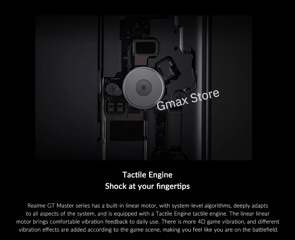 Серия Realme GT Master имеет встроенный линейный двигатель с системными алгоритмами, глубоко адаптируется ко всем элементам системы и оснащен тактильным двигателем. Линейный линейный двигатель обеспечивает комфортные отзывы о вибрации при ежедневном использовании. Существует больше вибрации 4D игры, и различные виброэффекты добавляются в соответствии с игровой сценой, что заставляет вас чувствовать себя как на поле битвы.