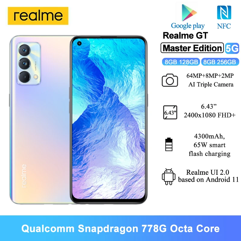 Смартфон Realme GT Master Edition на Android, экран 6,43 дюйма, камера 64 мп, NFC