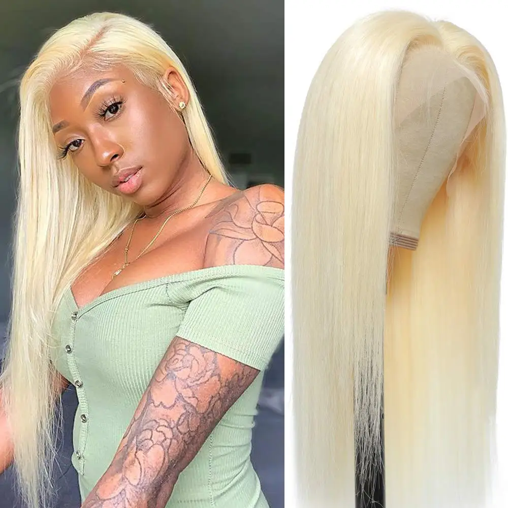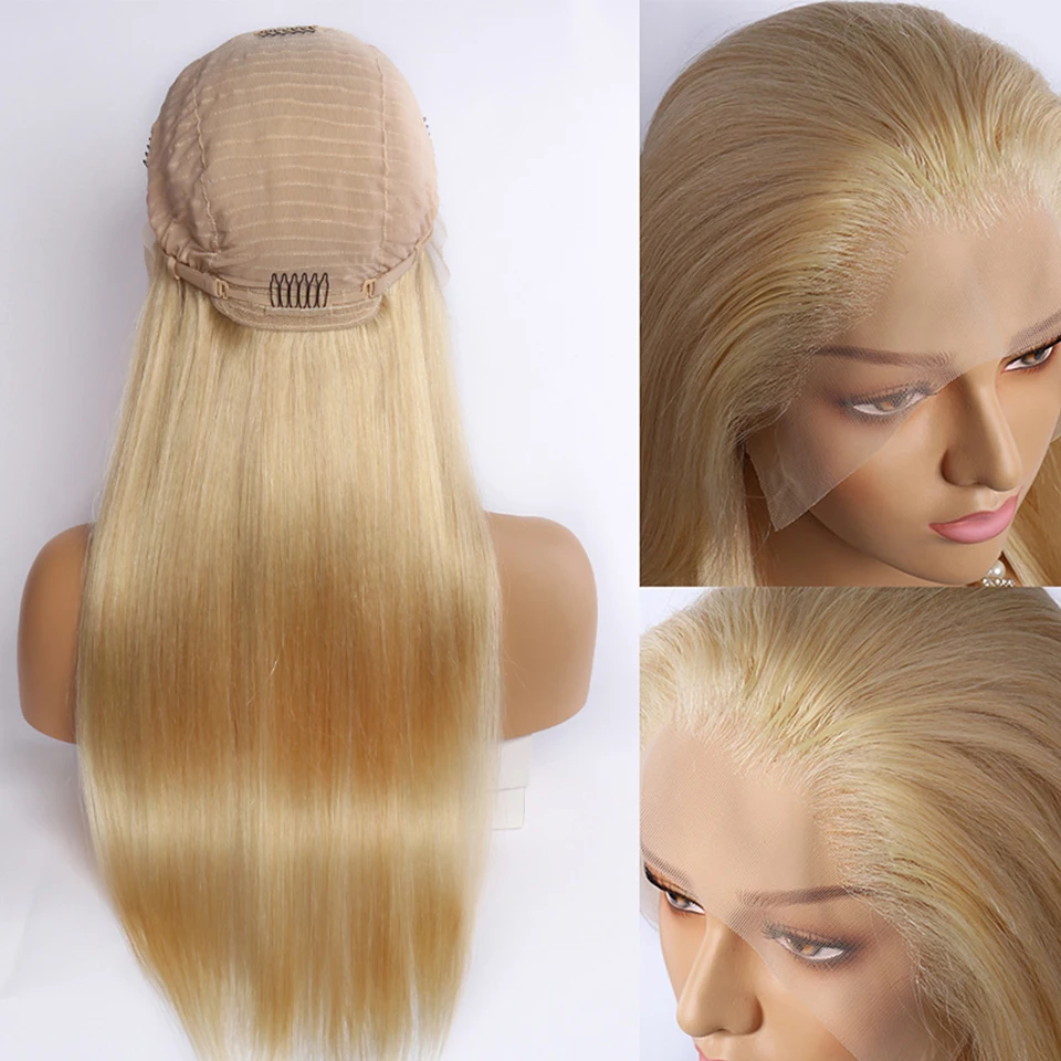 Парик на сетке спереди, 613, прозрачный, медово-светлый, на сетке спереди, парики из перуанских прямых человеческих волос, T-Part на выщипанный парик 613, Remy