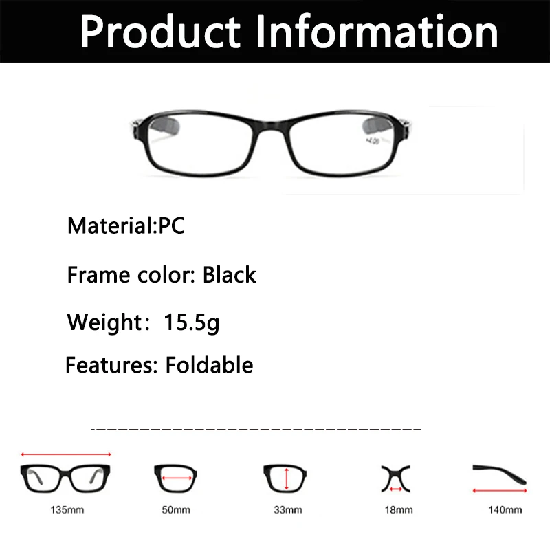 Очки для чтения Унисекс Складные, ультралегкие, с увеличительным чехлом