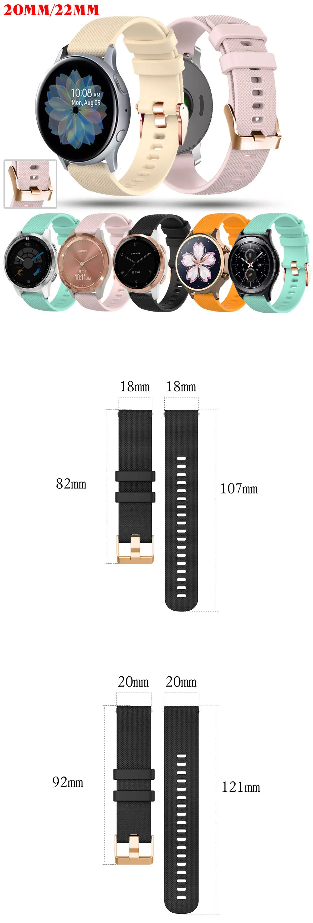 18 20mm Silicone Watchband For Samsung Gear S2 Amazfit GTS Strap Replacement Bracelet band For Garmin Vivoactive 4S Huawei B5