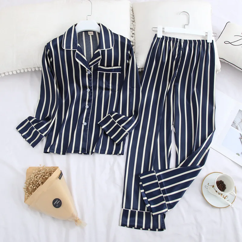 Женская пижама из вискозы Роскошная атласная в горошек с отложным воротником и цветочным принтом повседневная одежда с длинным рукавом мягкая Пижама домашний комплект для отдыха