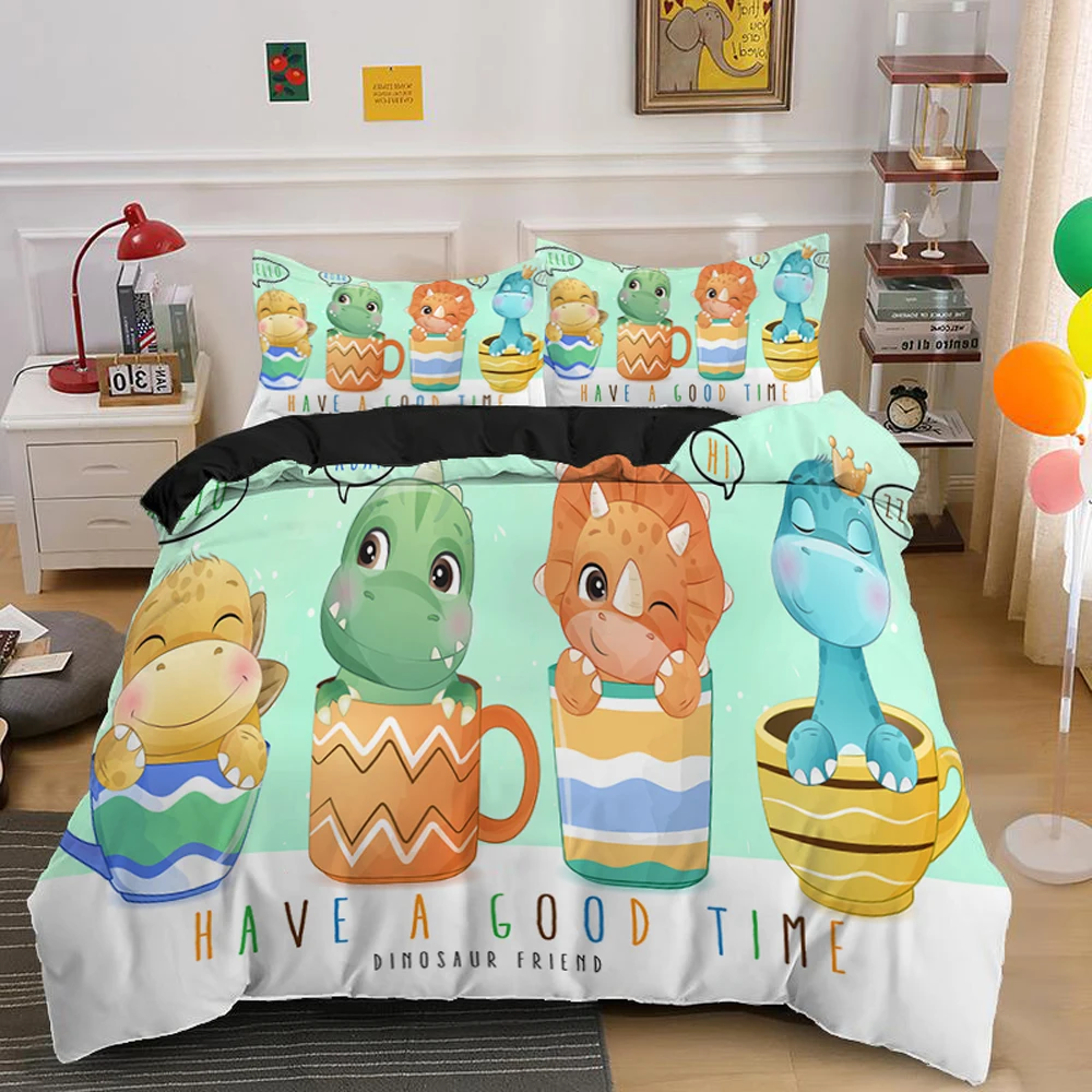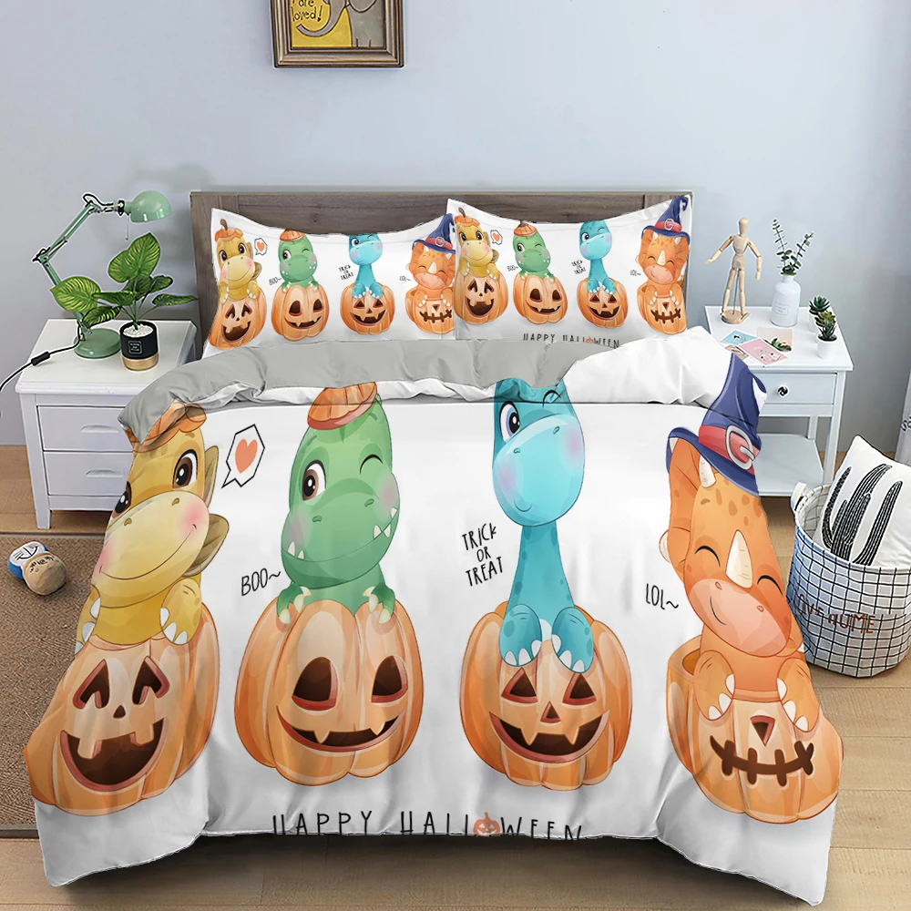 Рождественский Комплект постельного белья с мультяшным динозавром, одеялопододеяльник, односпальная кровать, полный размер, постельное белье для детей, подарок на Хэллоуин