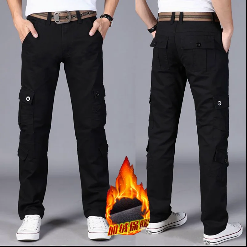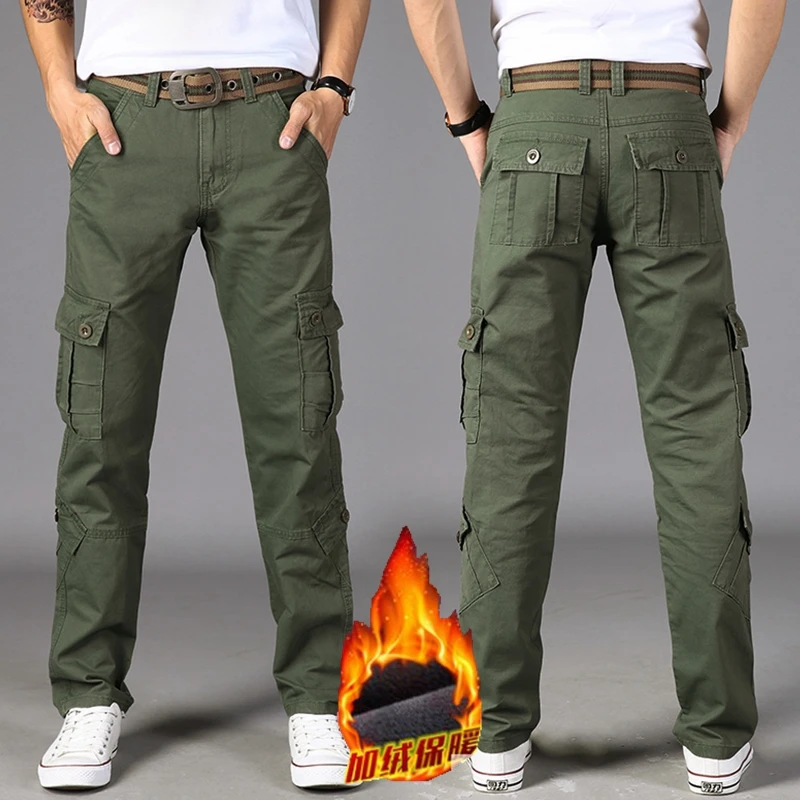 Зимние плотные флисовые повседневные брюки, мужские хлопковые военные тактические мешковатые брюки-карго, двухслойные бархатные теплые термобрюки