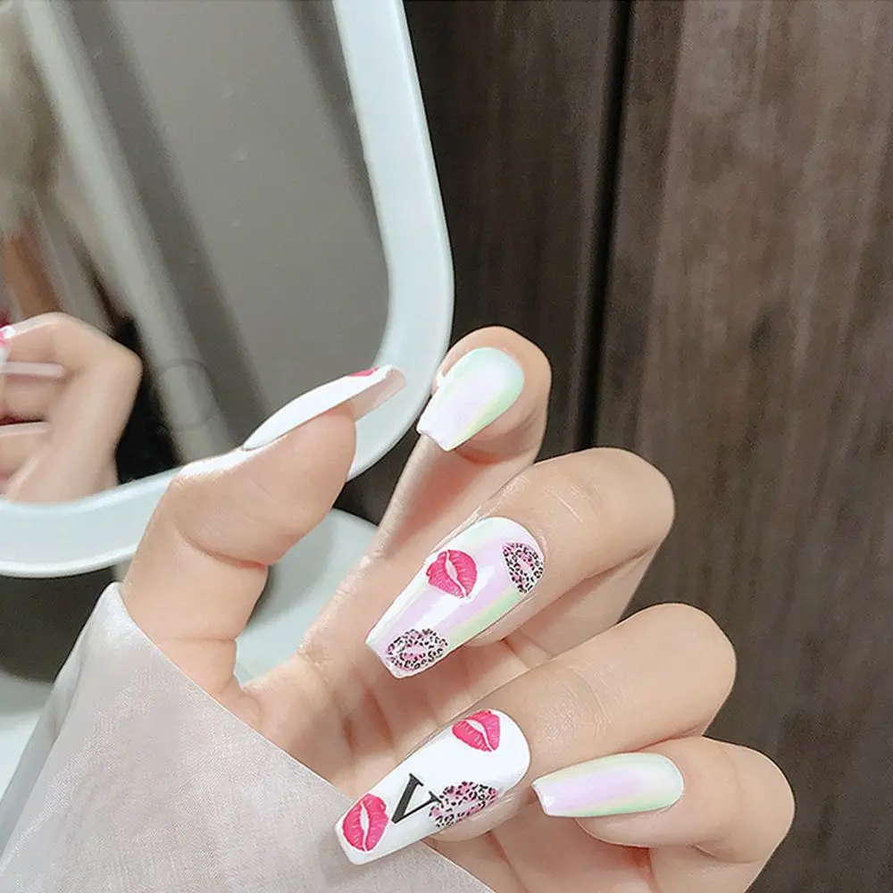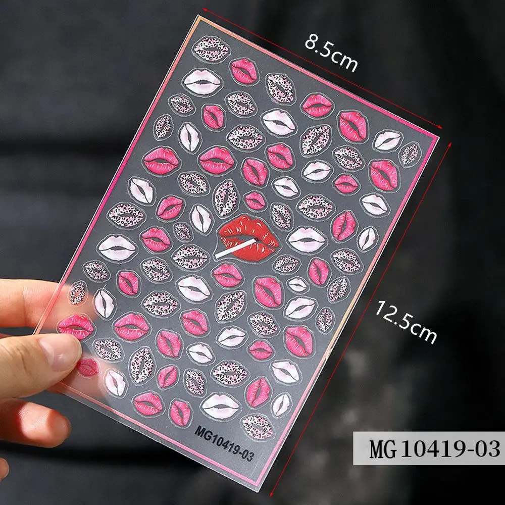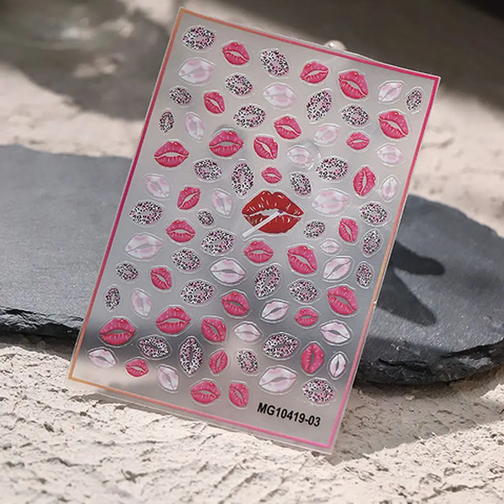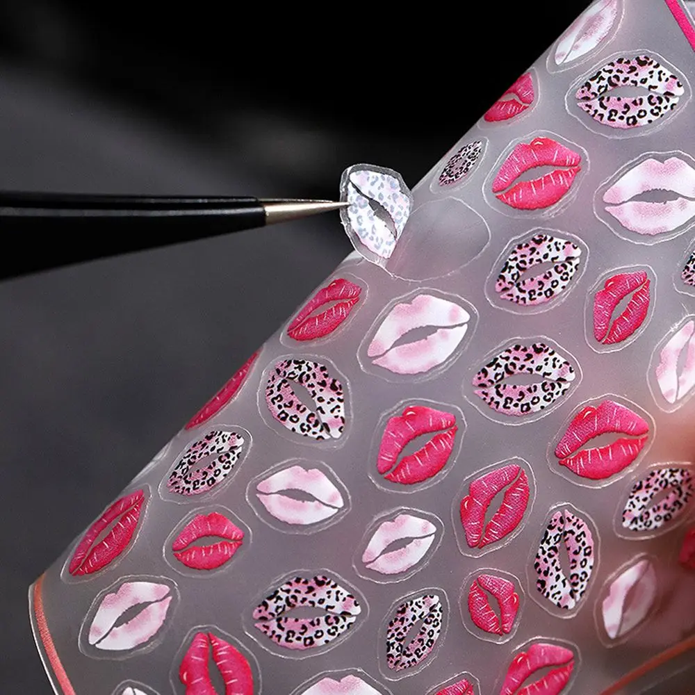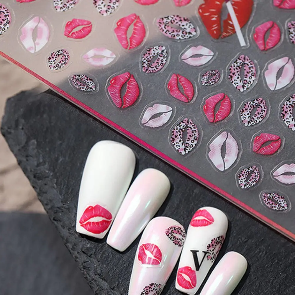 Новинка 2022, 3D Самоклеящиеся богемные наклейки для ногтей с изображением красных губ, декоративные материалы для ногтей, маникюр, День святого Валентина