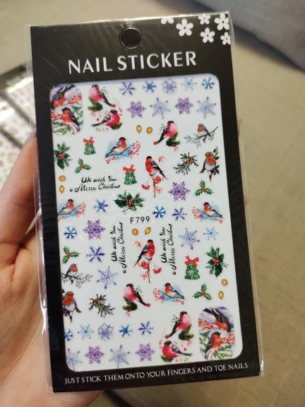 Снегири ну очень большие. На мои короткие ногти не влезли. Буду думать, куда их прилепить. А качество супер!