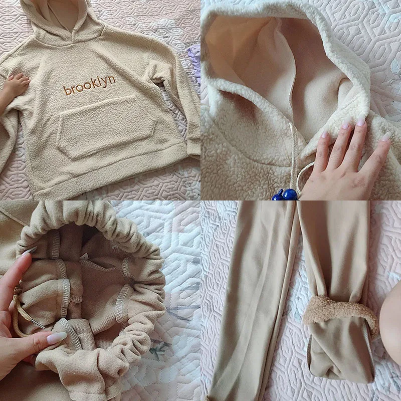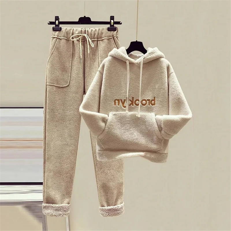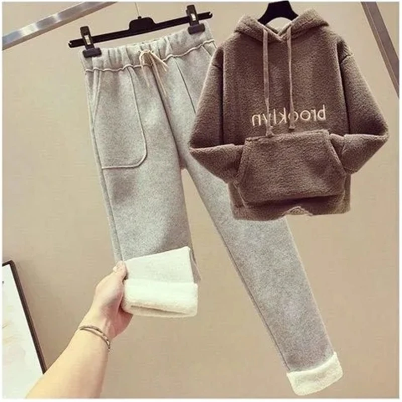 Осенне-зимний модный костюм, женская одежда, корейский Свободный плотный костюм из искусственной овечьей кожи и повседневные шерстяные брюки, Модный комплект из двух предметов