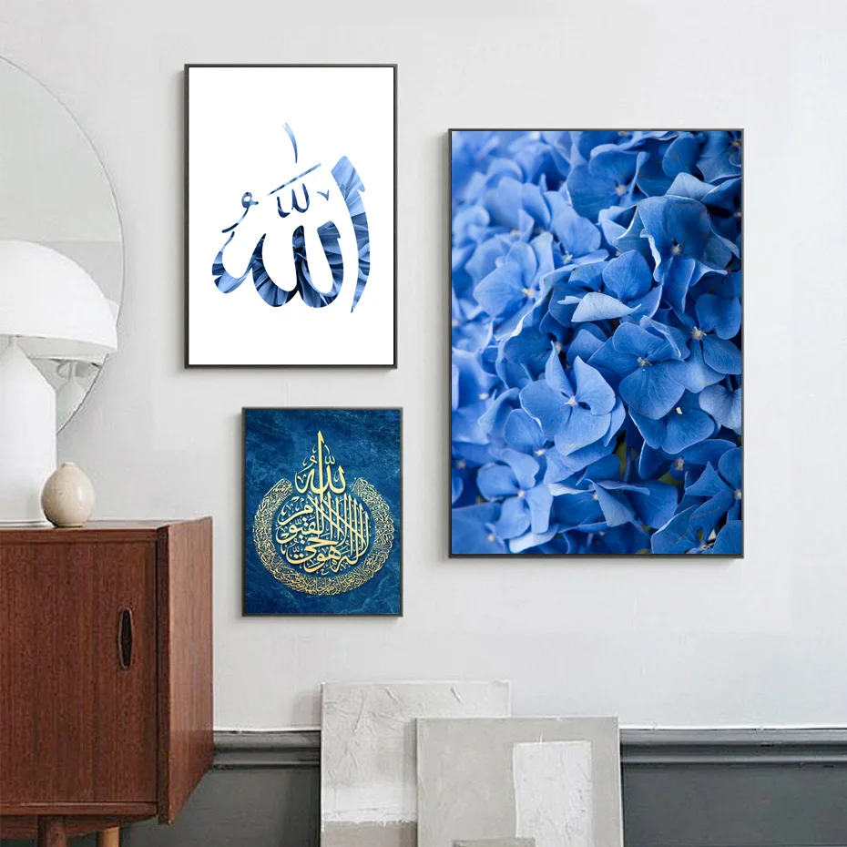 Исламская синяя Цветочная Каллиграфия Живопись Арабская стена фотопечать Современная религиозная стена художественное украшение для дома
