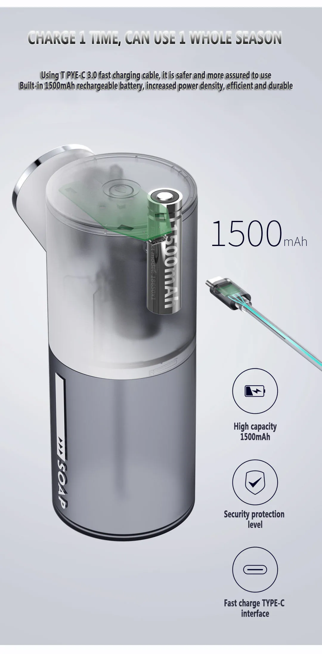 Посылка содержит: упаковочную коробку/дозатор мыла/Инструкции/TYPE-C кабель для передачи данных