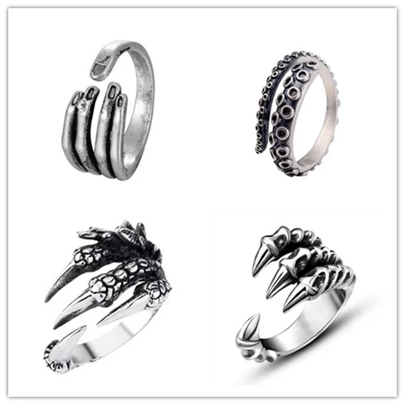 Оригинальное кольцо Лапа дракона в стиле ретро, мужское Открытое ко...