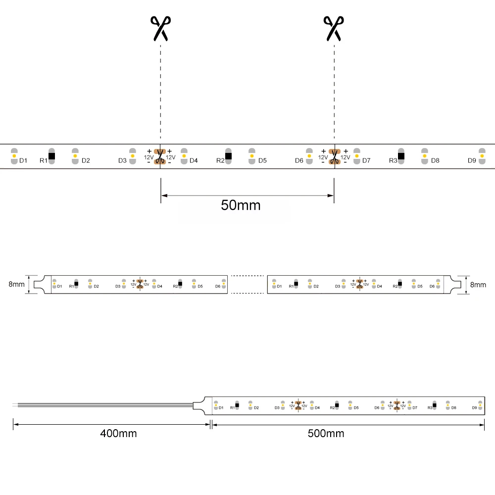 16 шт Светодиодная лента теплый белый 50 см (1 шаг)
