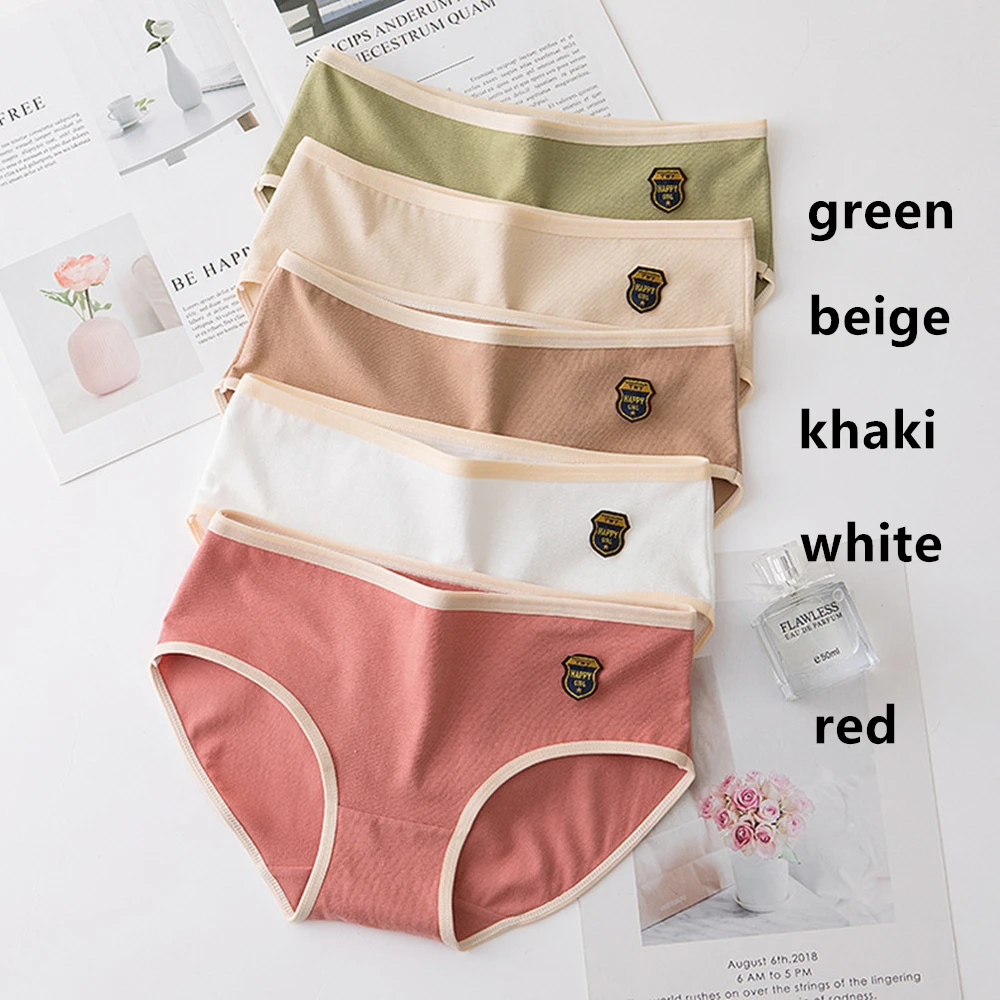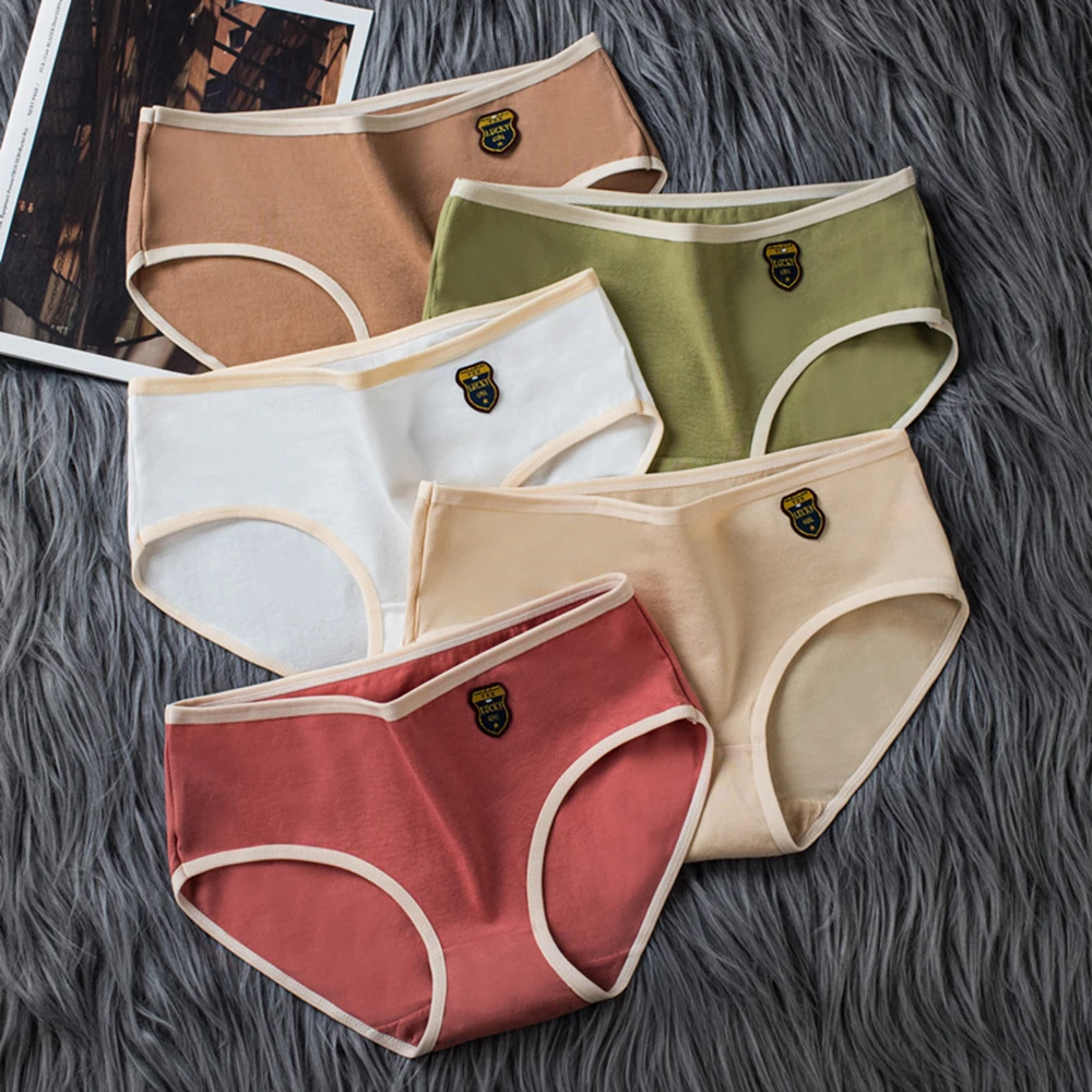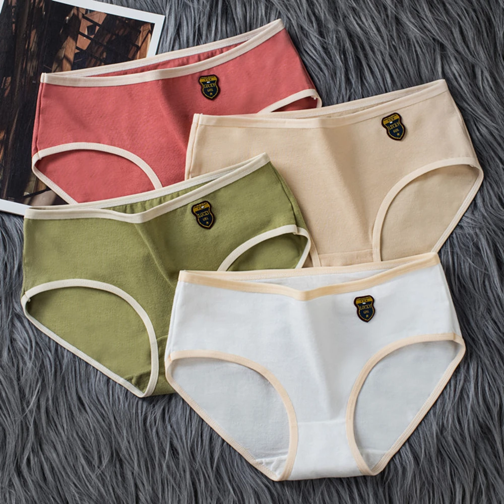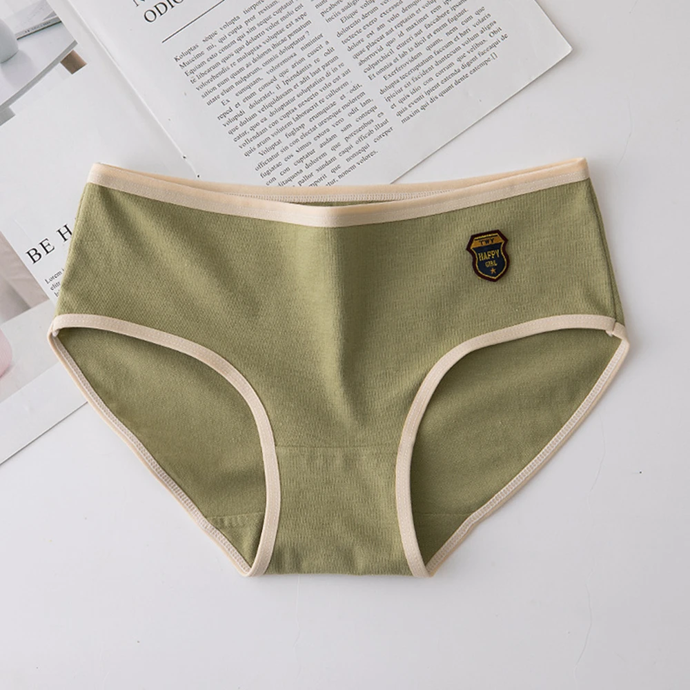Хлопковое женское нижнее белье для девочек, удобные бесшовные трусики, трусики с вышивкой и значком, однотонное нижнее белье, трусы для девочек со средней талией