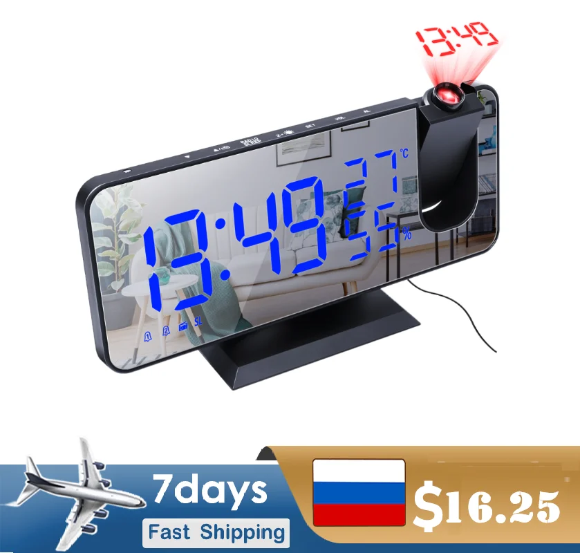 Проекционный будильник большой светодиодный дисплей потолочный прое...