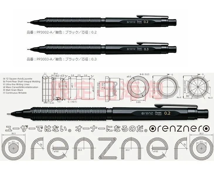 Японский механический карандаш PENTEL PP3003-A ORENZNERO, низкий центр тяжести, автоматический выдвижной дизайн пера