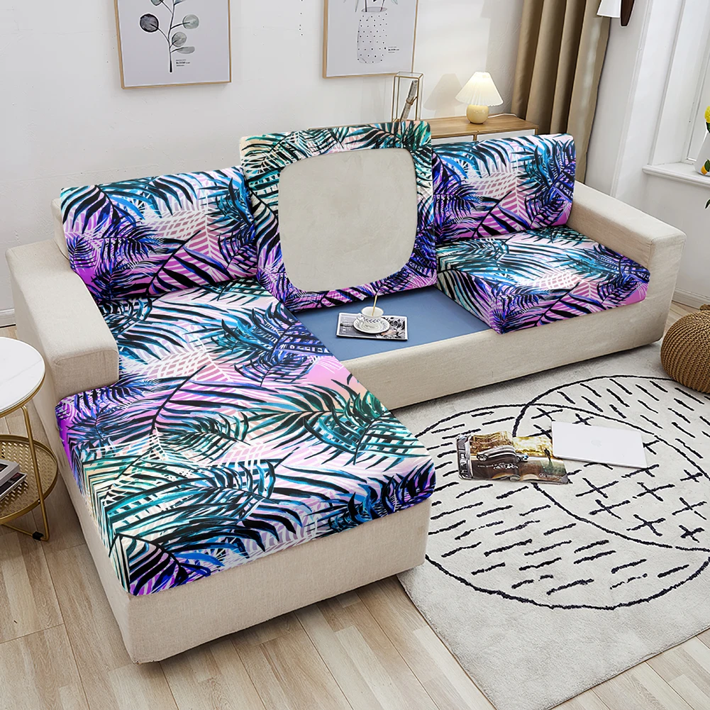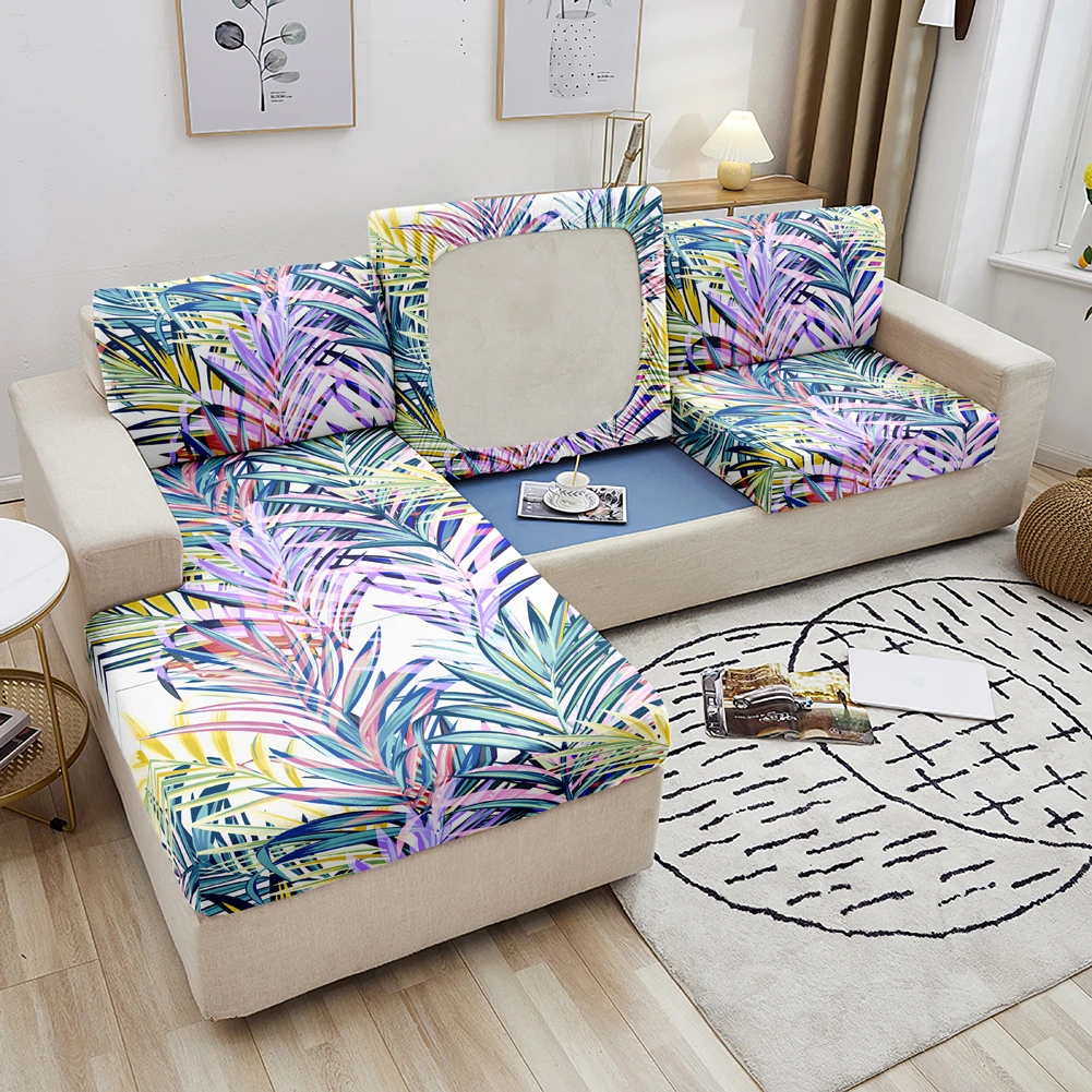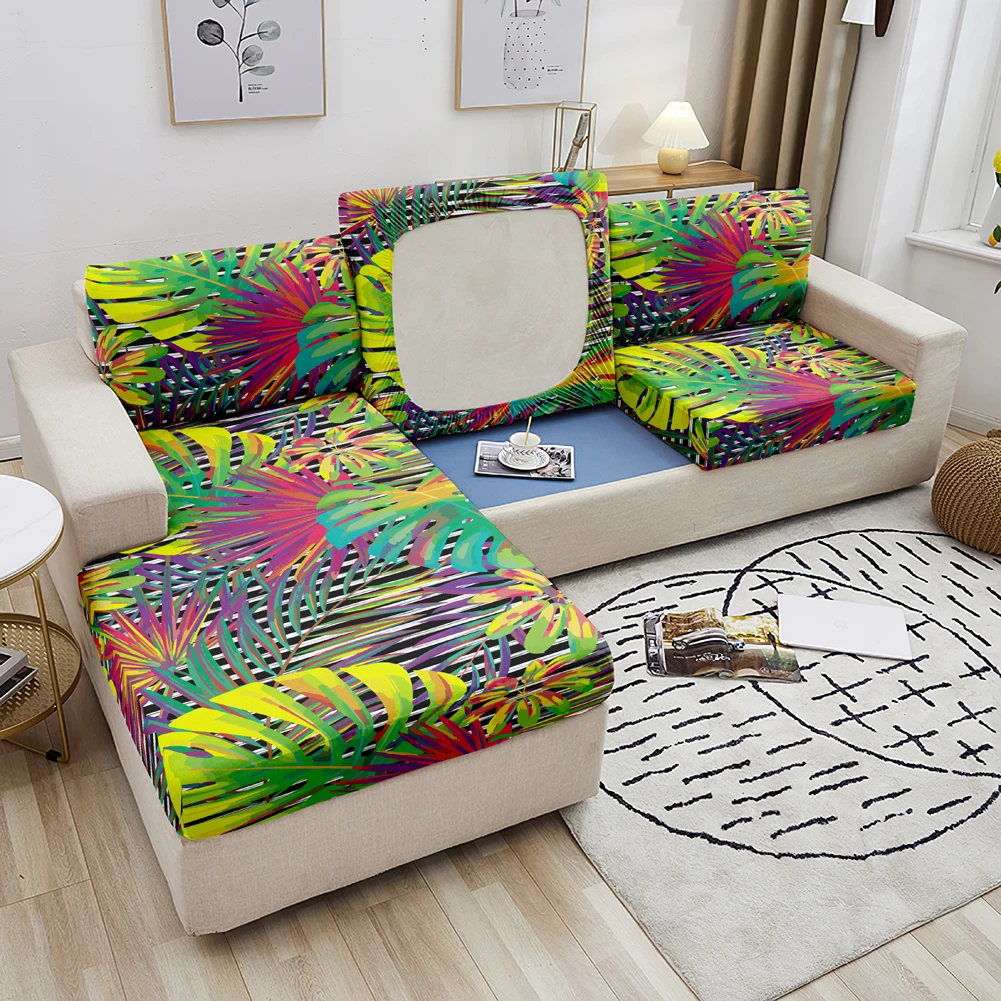 Чехол для дивана, эластичный, разных размеров, для гостиной, 1-4 сидения, ткань с листьями
