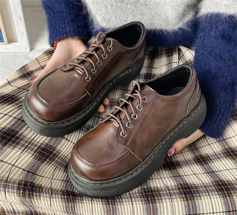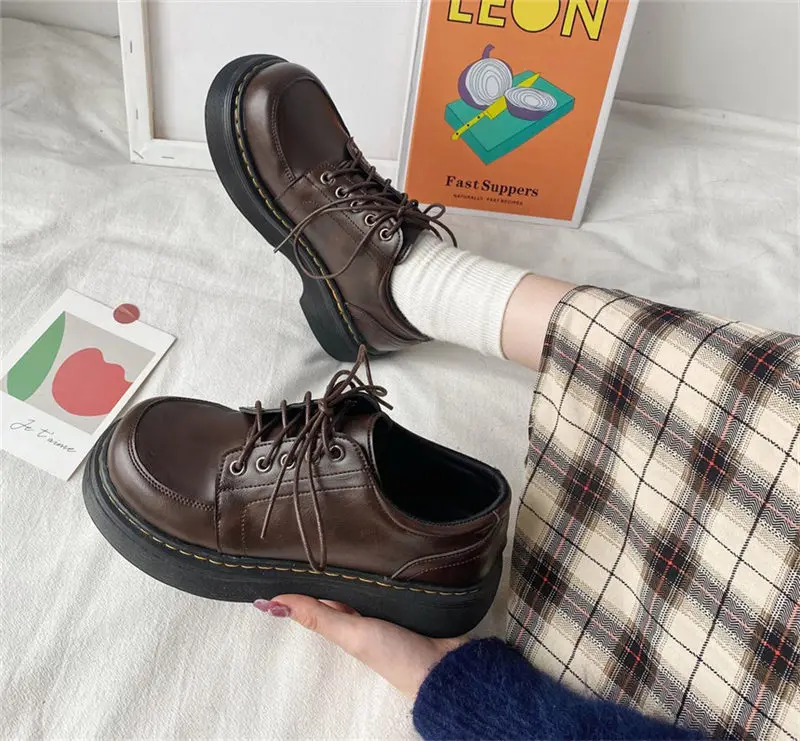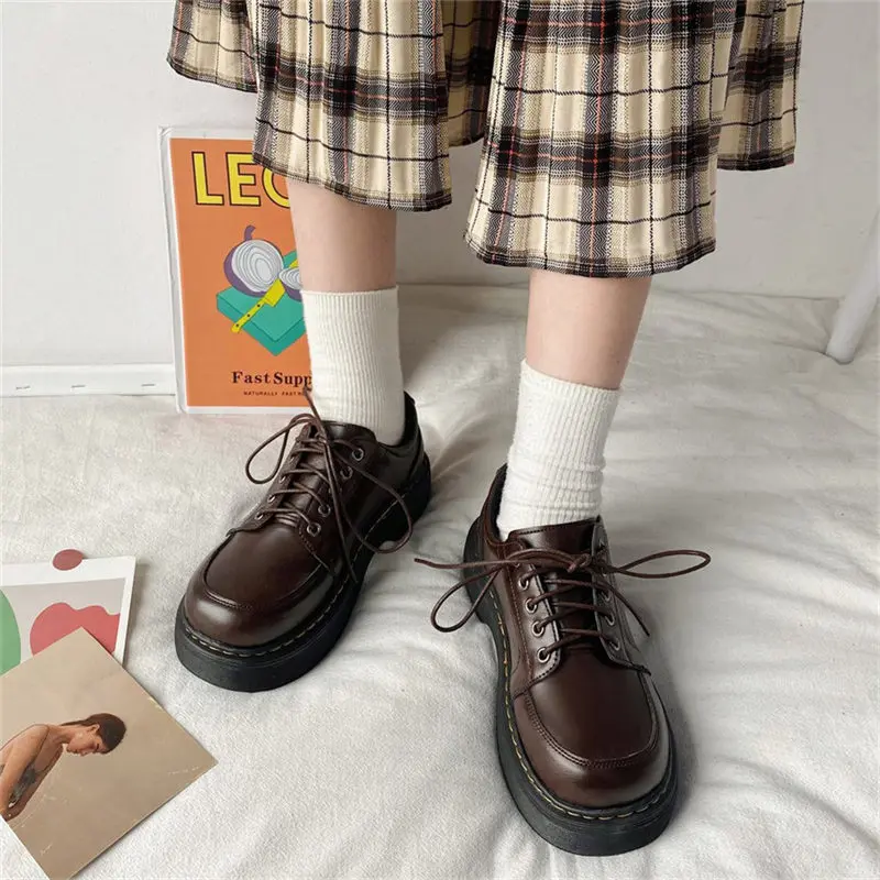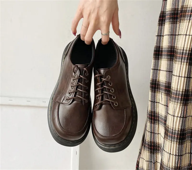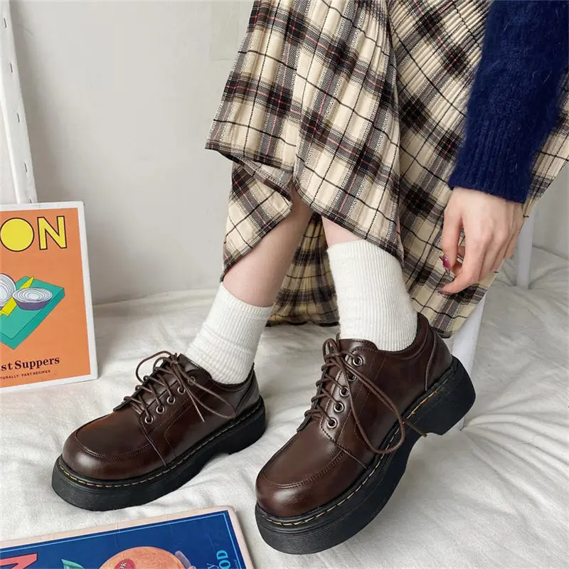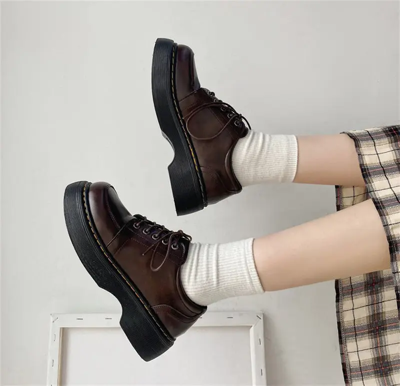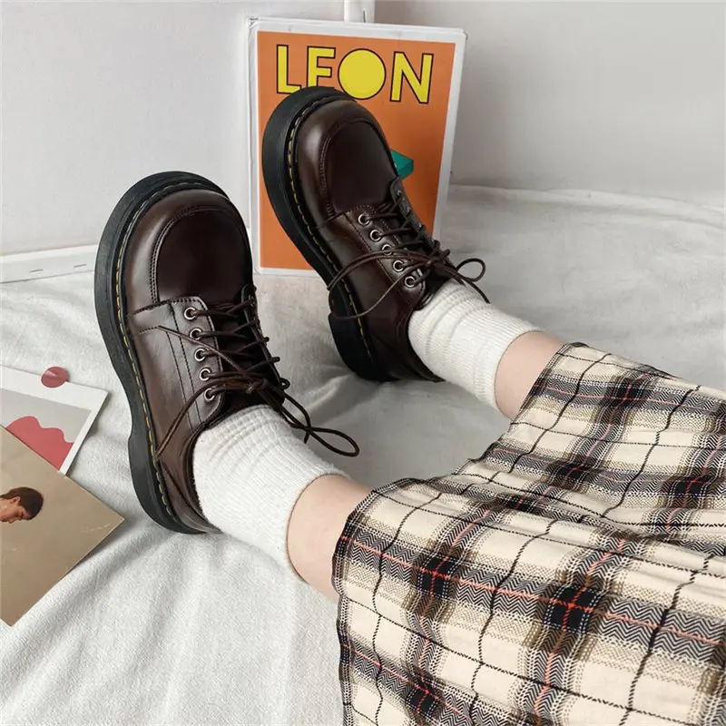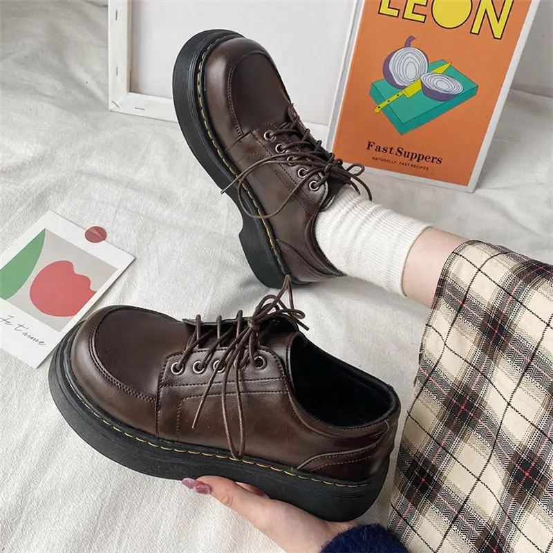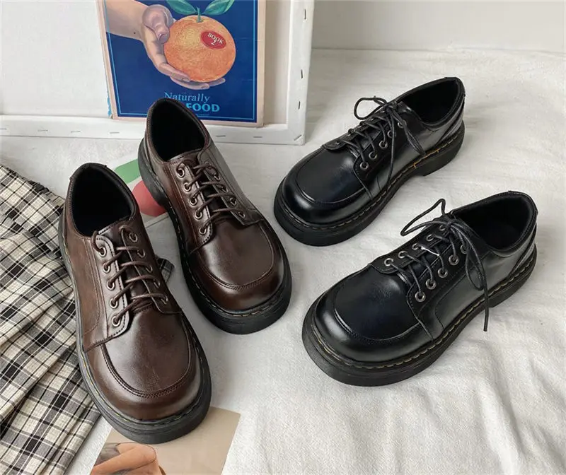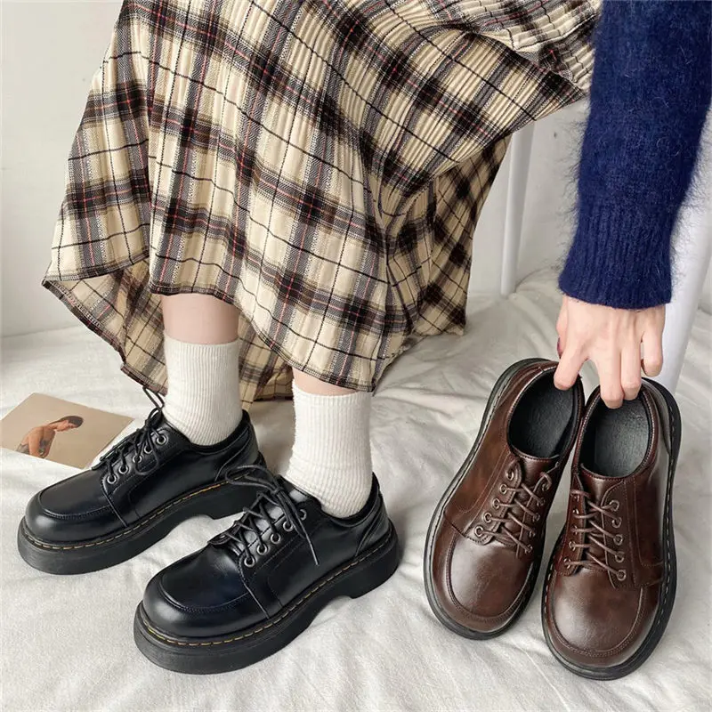 Униформа в стиле колледжа, маленькие кожаные туфли, женские туфли в британском стиле, коричневые туфли на платформе в стиле ретро, Лолита