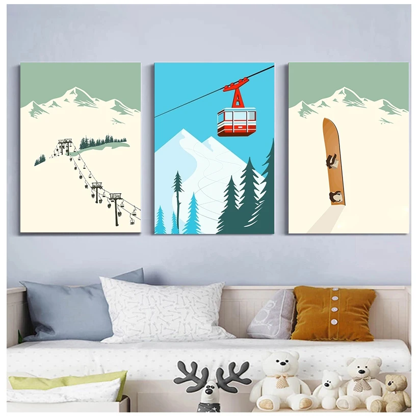 Ретро-постер для путешествий зимних видов спорта, катания на лыжах, картина для катания на лыжах в заснеженной горе, зимнее украшение для дома icon star icon star icon star icon star icon star