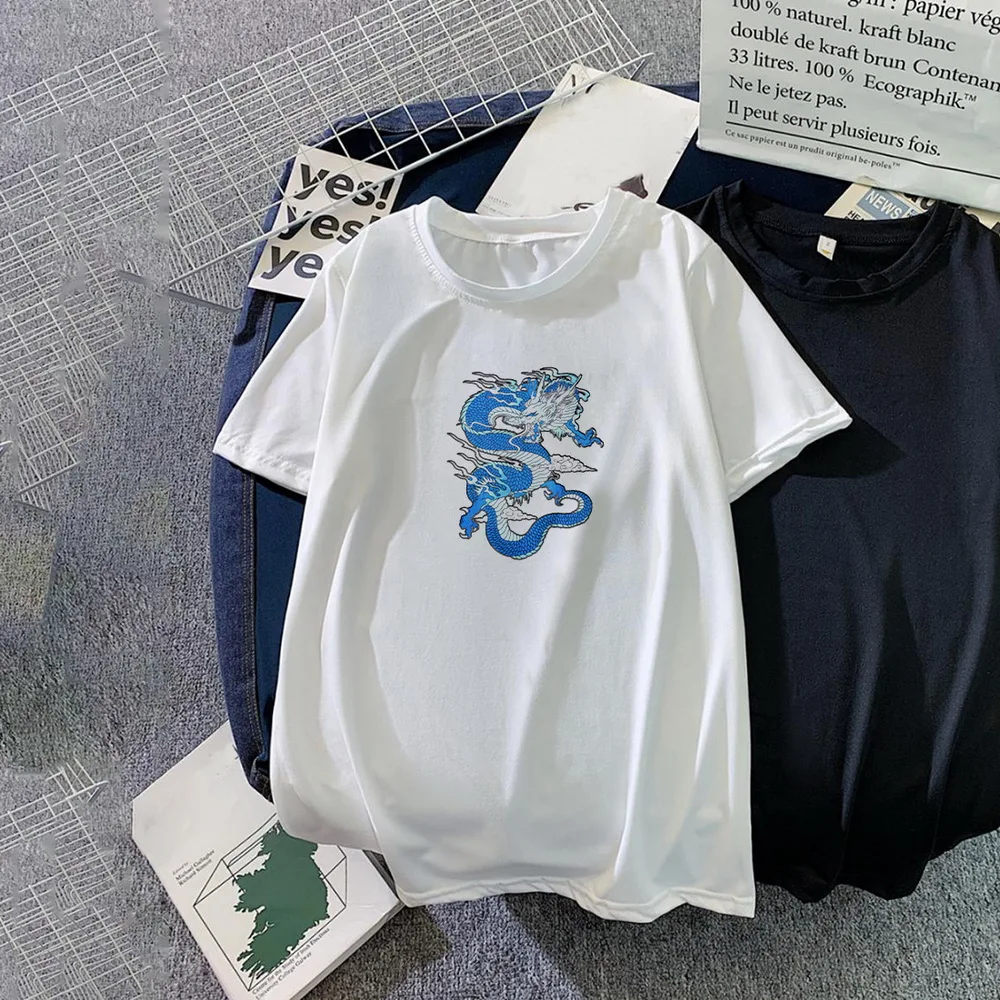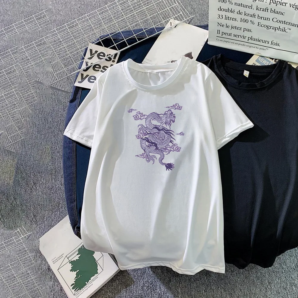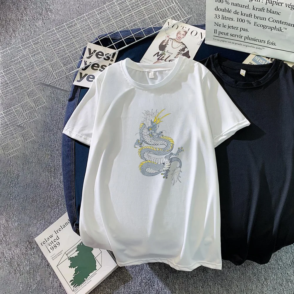 Женские футболки, уличная одежда с принтом дракона, топы, футболка ...