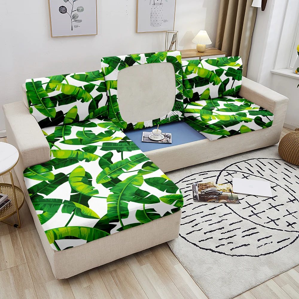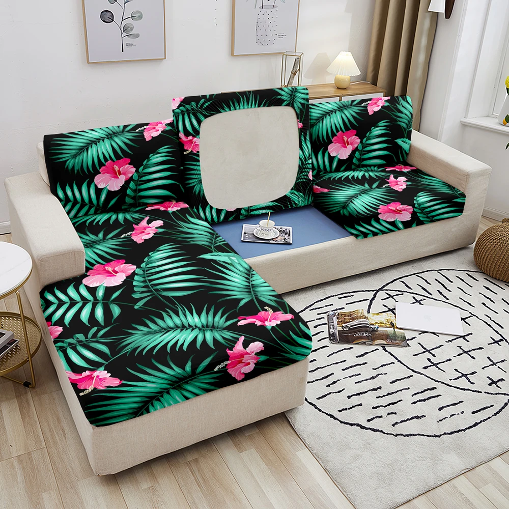 Накидка на диванную подушку, 1234 сидений, эластичная, с тропическими растениями