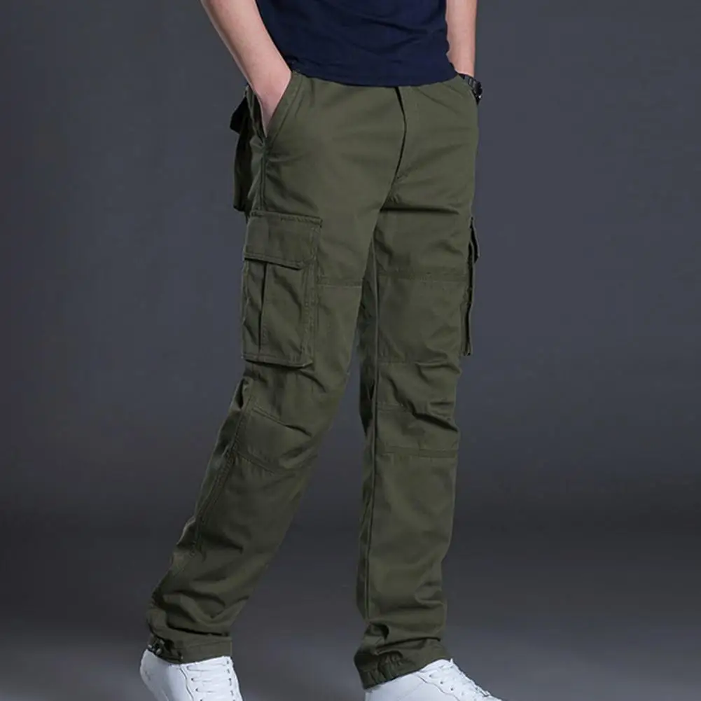 Однотонные брюки-карго с несколькими карманами, дышащие брюки с эластичным поясом для кемпинга, рабочая одежда