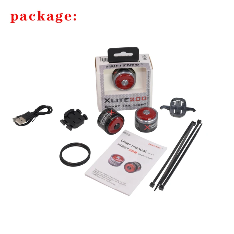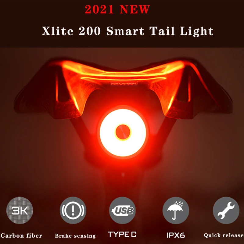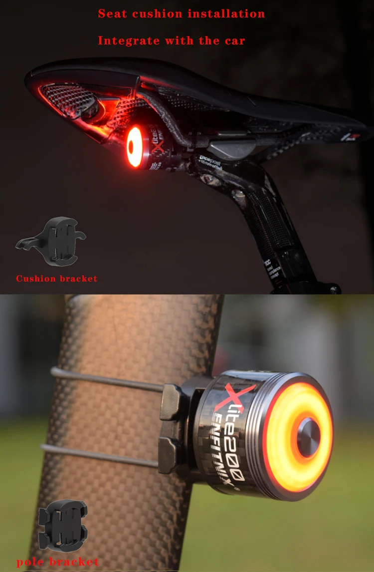Enfitnix Xlite 200 велосипедный умный задний фонарь IPX6 6 режимов вспышки T600 углеродное волокно светильник вес для стандартного крепления