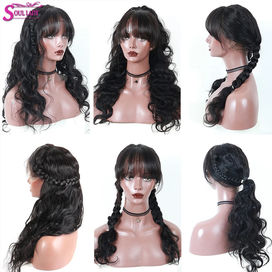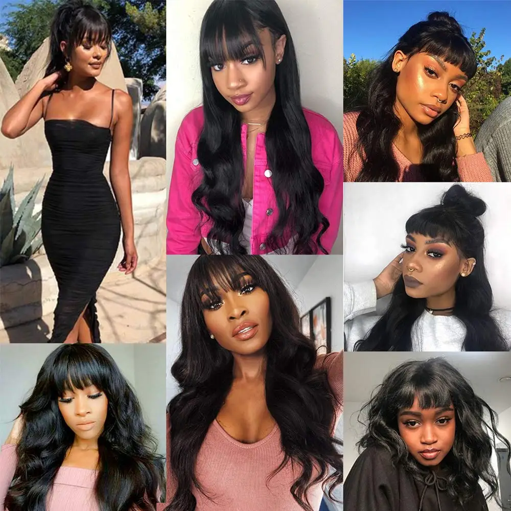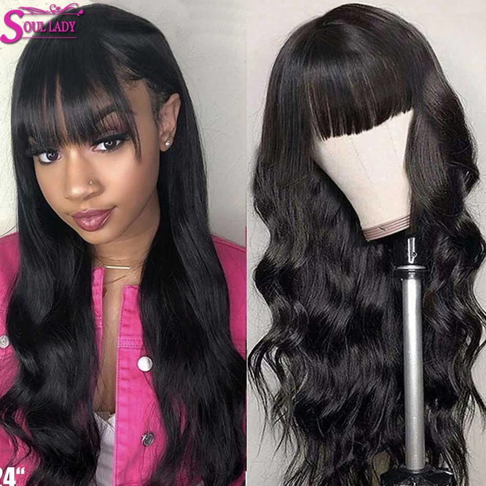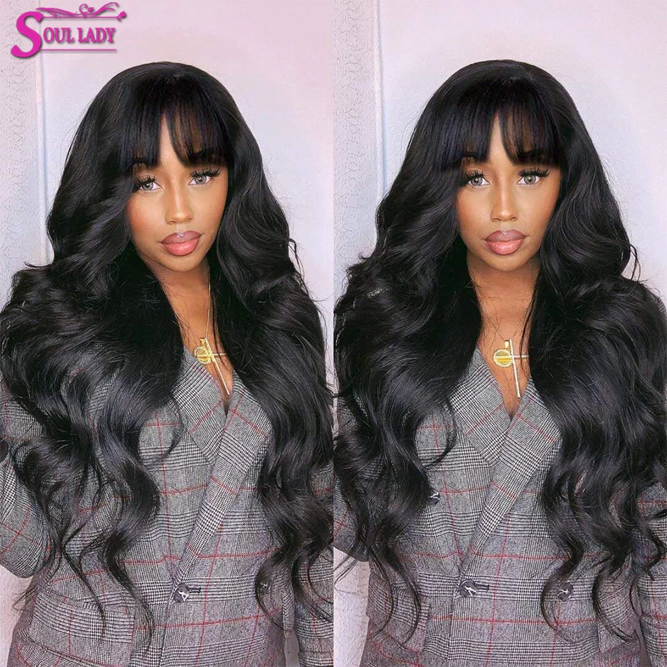 Парик из натуральных волнистых волос с челкой, 13x 4, для чернокожих женщин