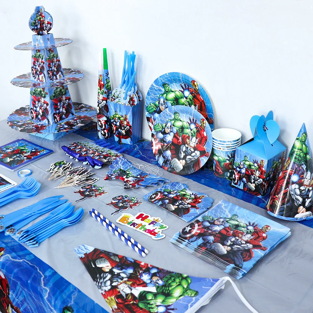 Одноразовая посуда для детского дня рождения с супергероями, скатер...