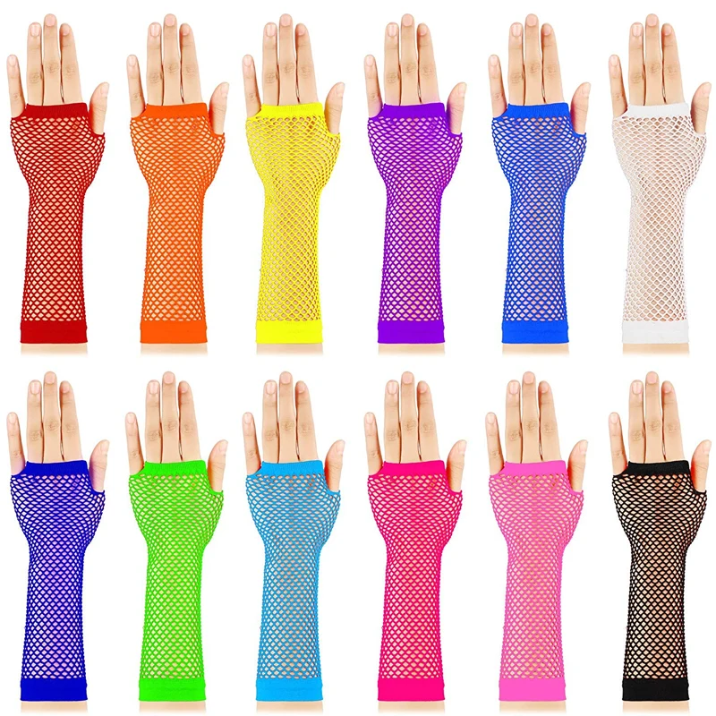 Модные неоновые длинные перчатки, манжеты для ног и рук, одежда для вечеринки, модное платье для женщин, сексуальные сетчатые перчатки для рук