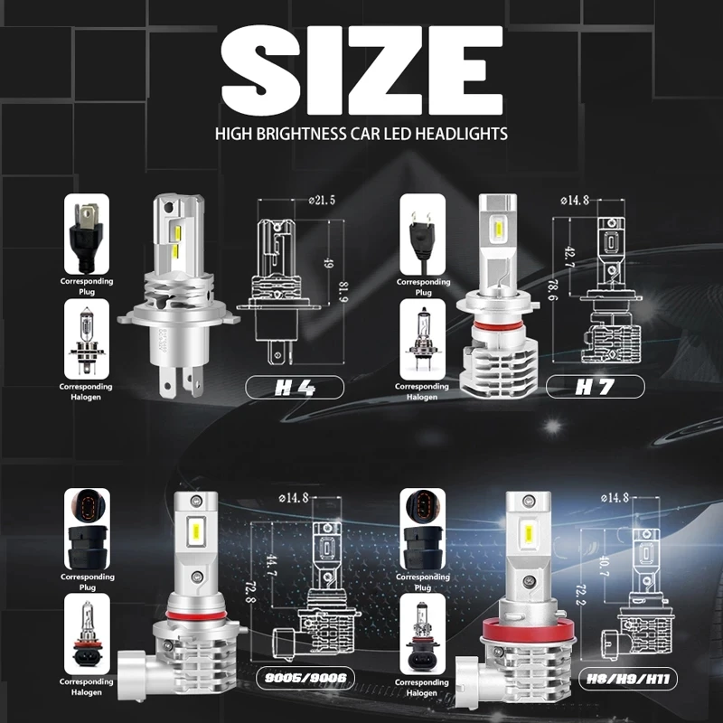 Светодиодные лампы для Фар H4, H8, H11, H7, автомобильные лампы, автоматическое подключение, HB4 9006, HB3 9005, светодиодные противотуманные фары, 6000K, 12 В, 24 В, для грузовиков без вентилятора