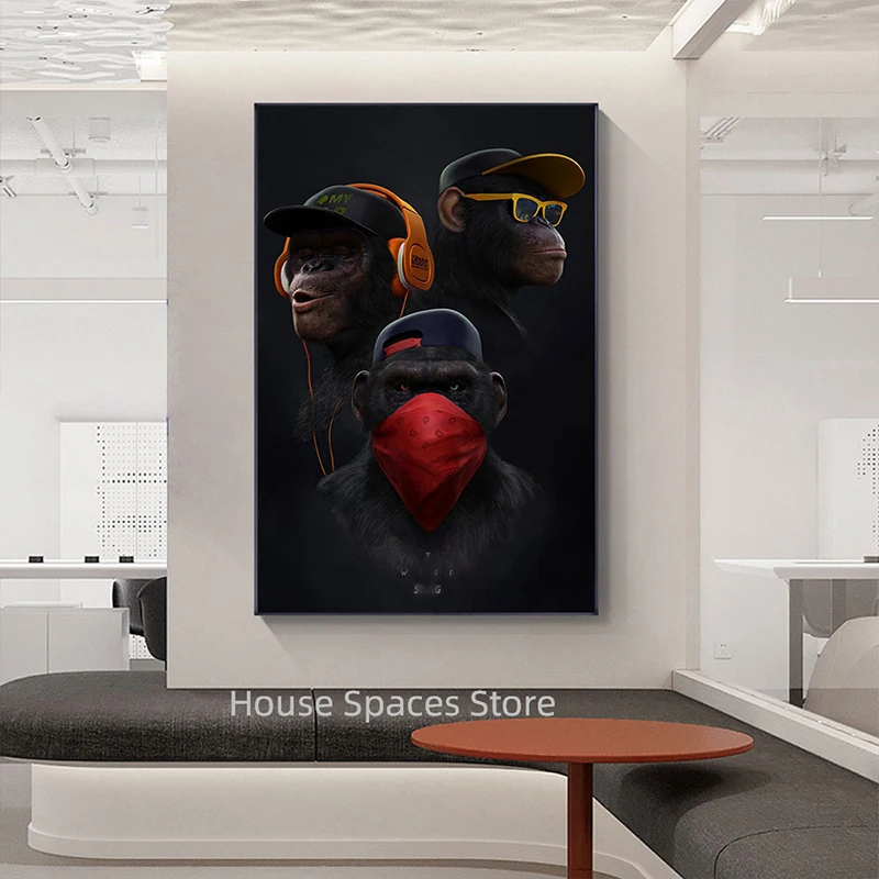 Современное искусство, три смешных обезьяны, холст, искусство на стене, картина для гостиной, скандинавский Декор для дома, без рамки