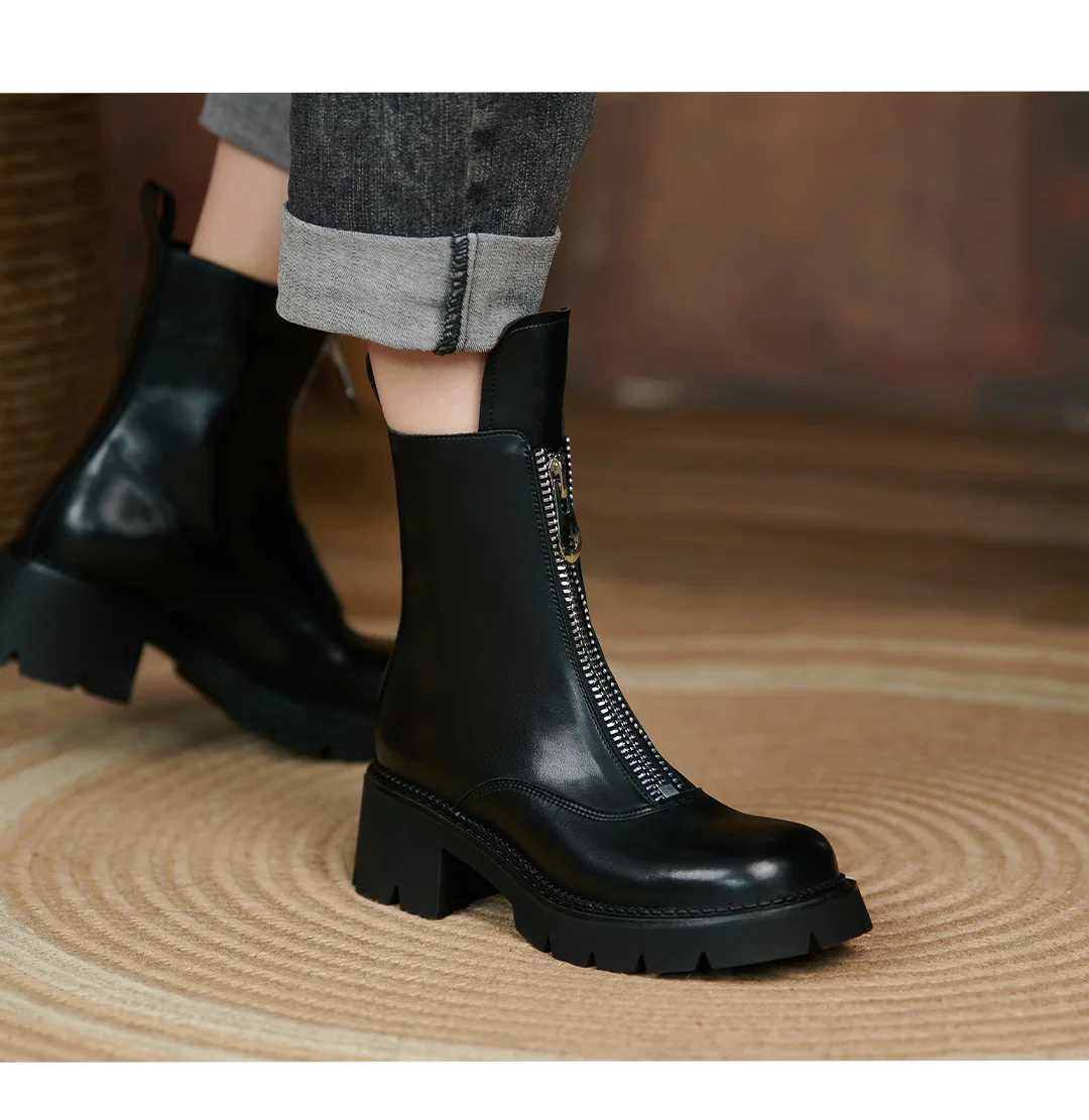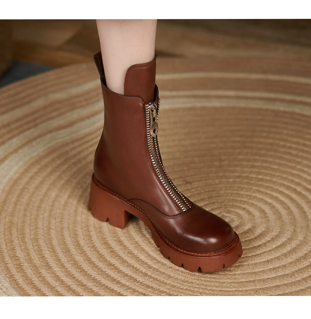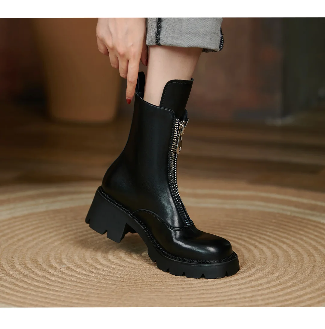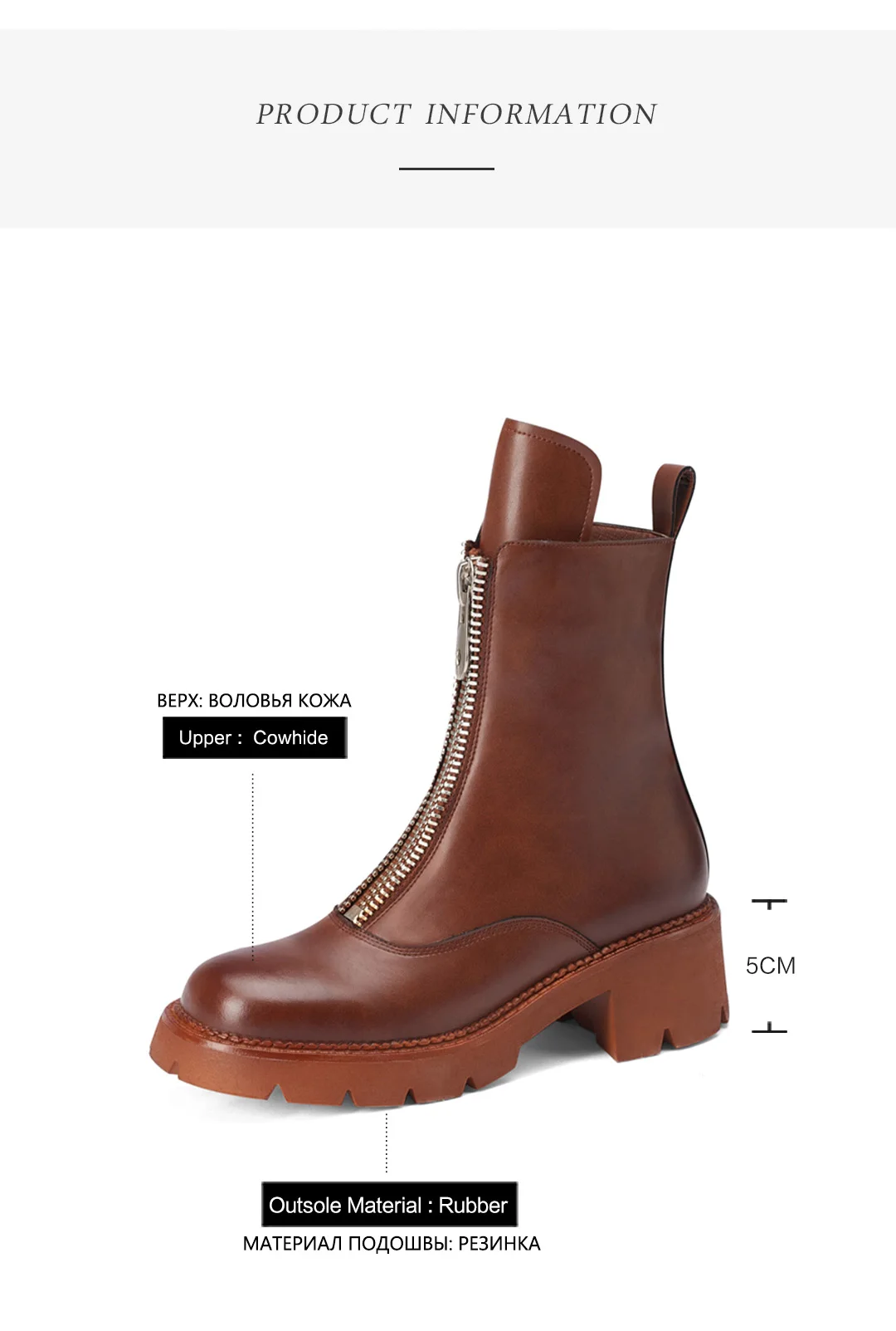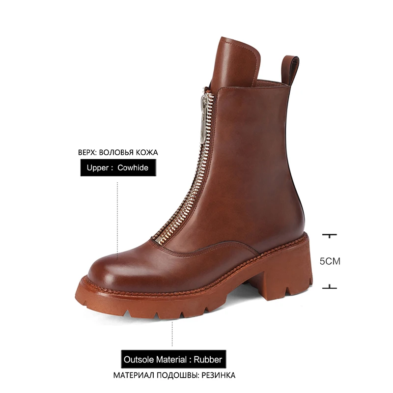 Donna-inроскошные кожаные ботинки Martin; Новинка 2021 года; Женские ботильоны на платформе с блочным каблуком; Женская уличная обувь на молнии спереди